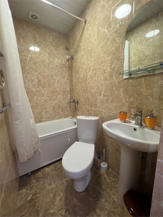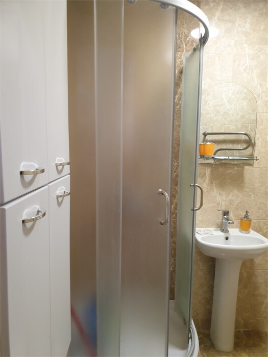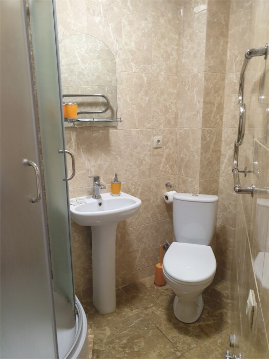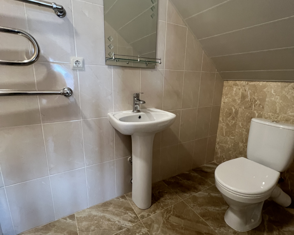 Ванная комната вне номера индивидуальная: душ, раковина, туалет.