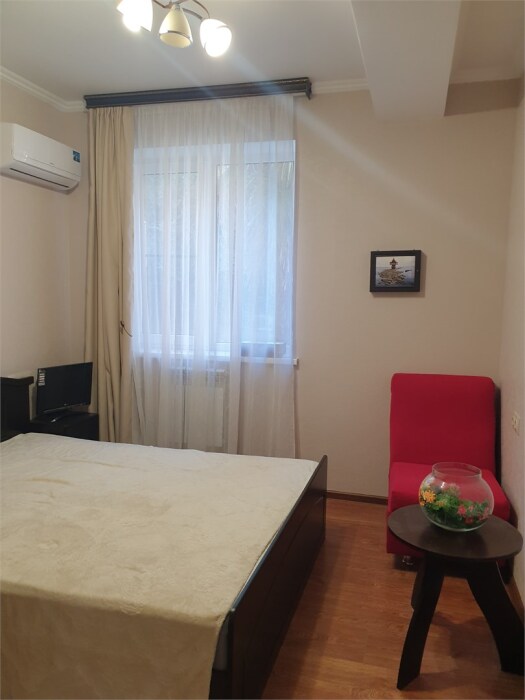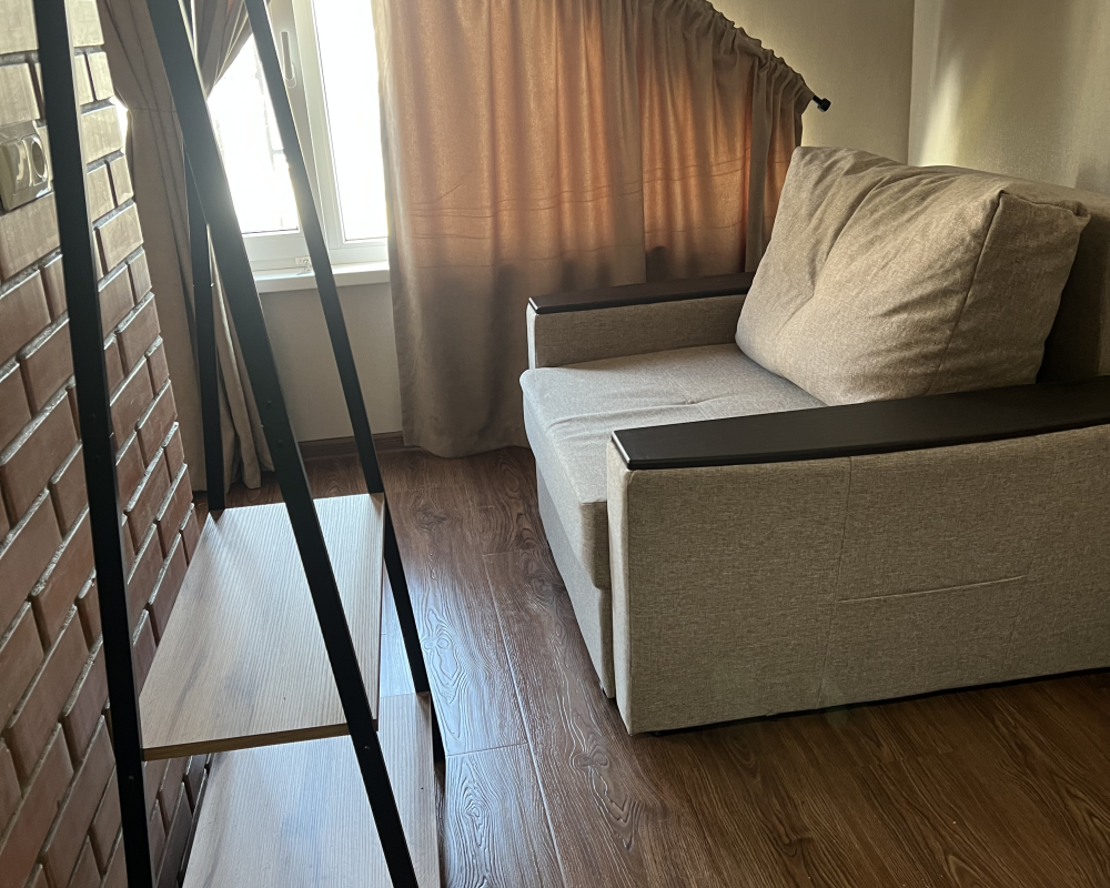 Имеется: телевизор, кондиционер, отопление шкаф, вешалка, зеркало, плотные шторы, рабочий стол, стулья, чайник, фен.