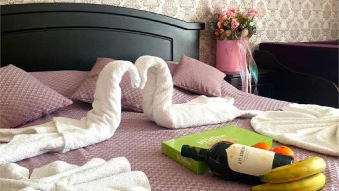 Сдается новый номер для семьи или компании из 4-х человек.В номере есть все необходимое для комфортного времяпровождения: телевизор, холодильник, чайник, одноразовые гигиенические средства, халаты, полотенце.