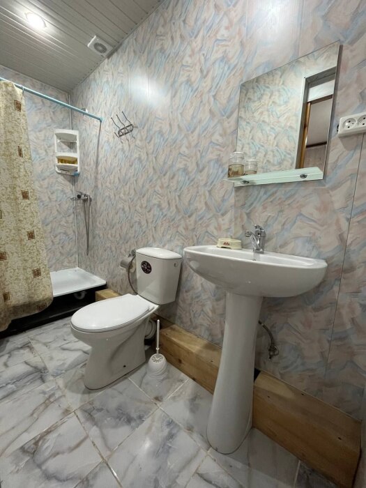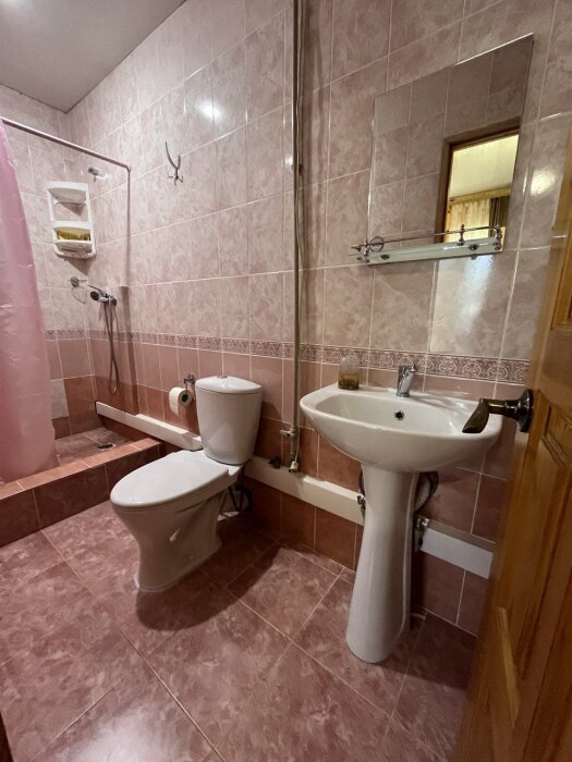 Индивидуальная ванная комната: душ, раковина, туалет.