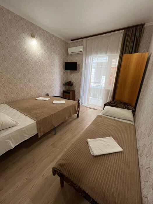 Трёхместный стандарт площадью 15 кв.м. с балконом с видом во двор.