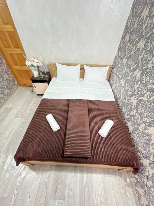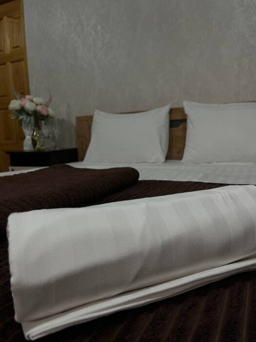 Индивидуальная ванная комната: душ, раковина, туалет. В стоимость входит: постельное бельё, полотенца, мыло.