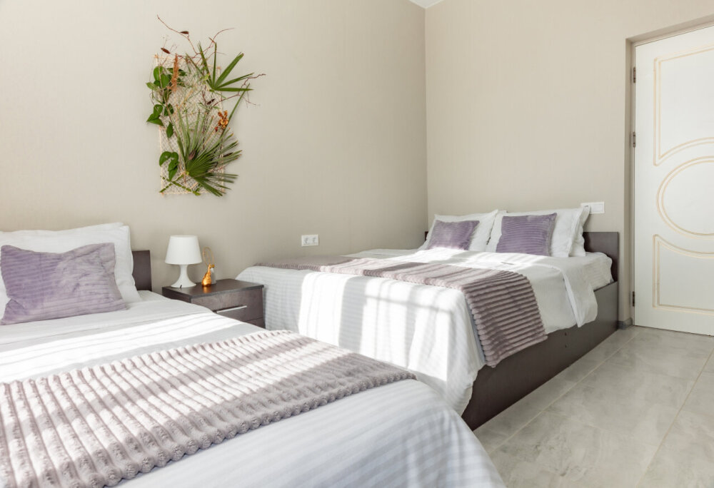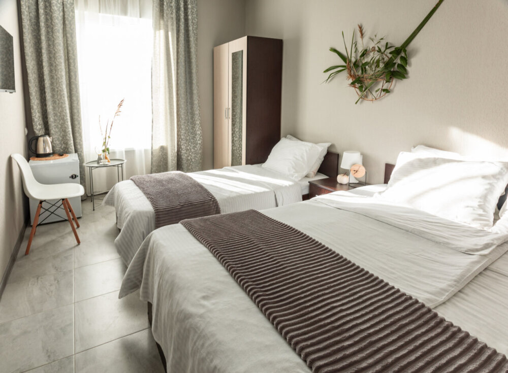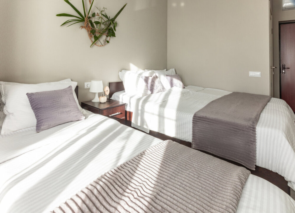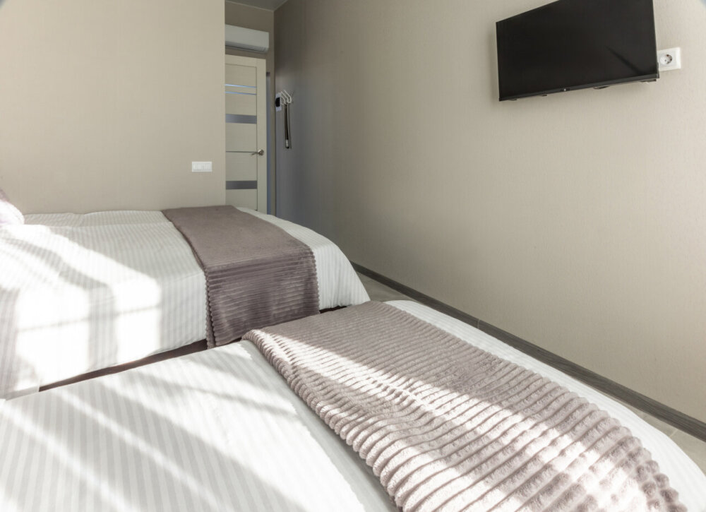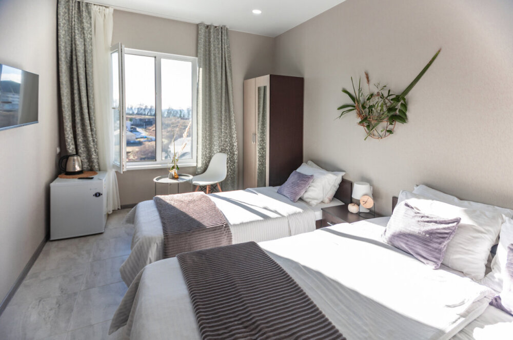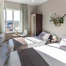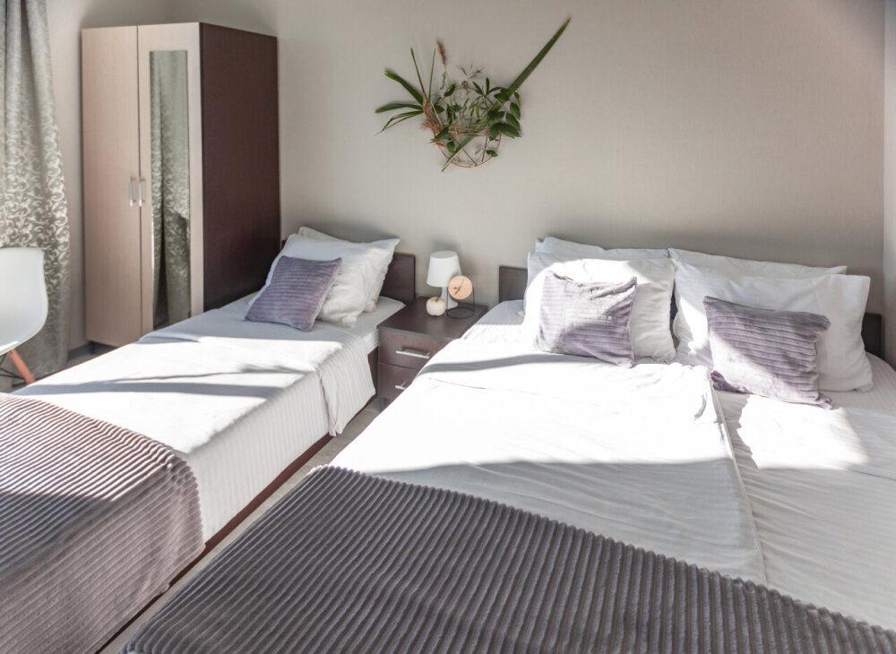 Для Вашего удобства просторные современные 3-местные номера оборудованные всей необходимой мебелью и техникой, кондиционером, индивидуальной ванной комнатой с набором гигиенических принадлежностей. Вас ждут белоснежное постельное белье, полотенца, места для сушки мокрых вещей, услуги прачечной, бесплатный Wi-Fi, безупречная уборка.