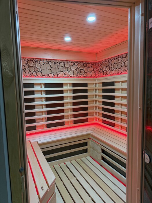На территории расположен крытый бассейн с подогреваемой водой и инфракрасная сауна.