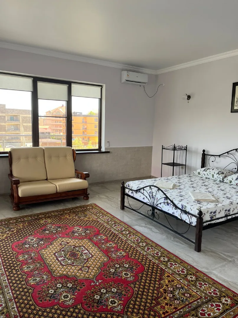Просторный номер с удобной двухспальной кроватью и диваном.