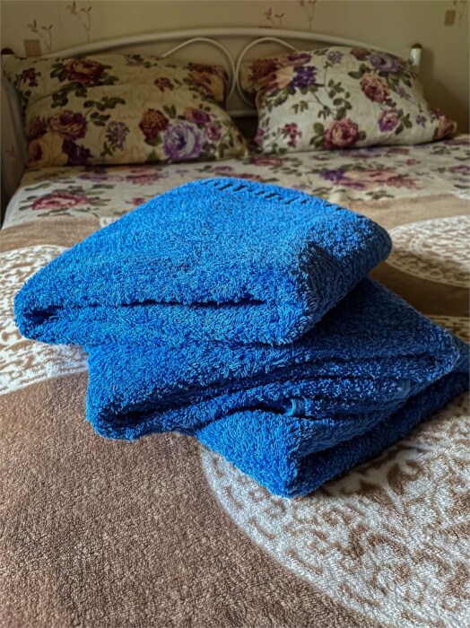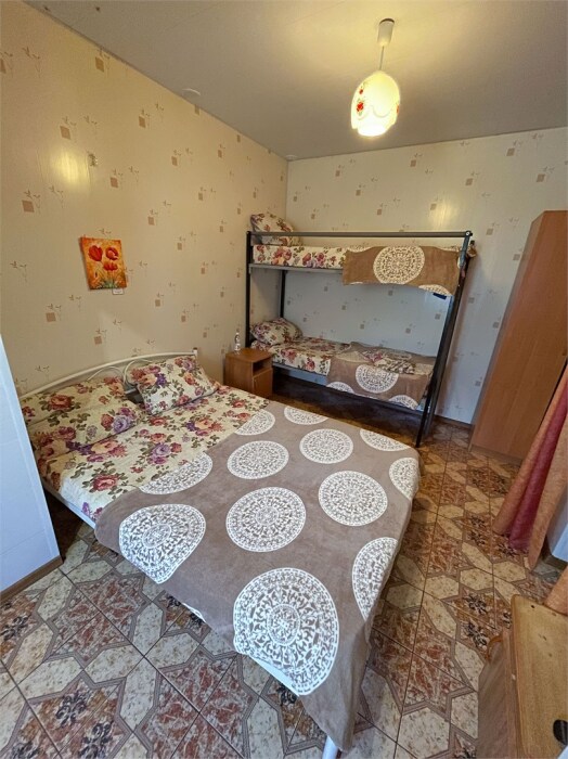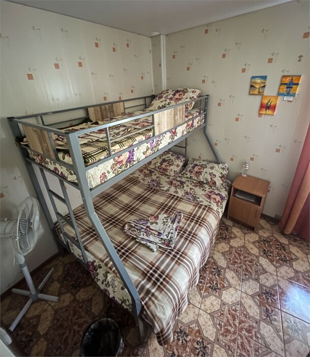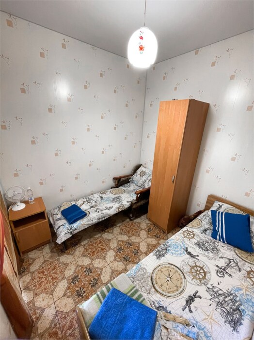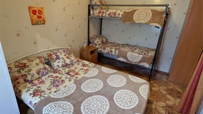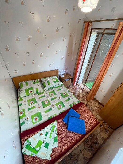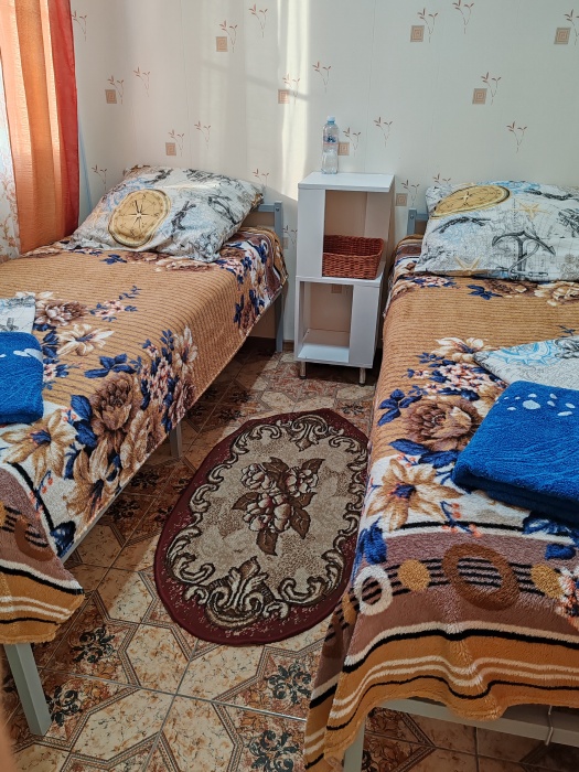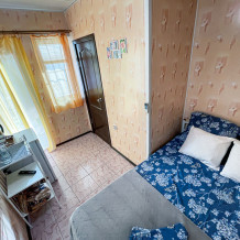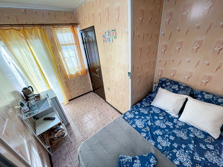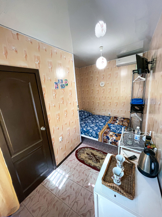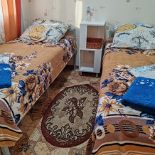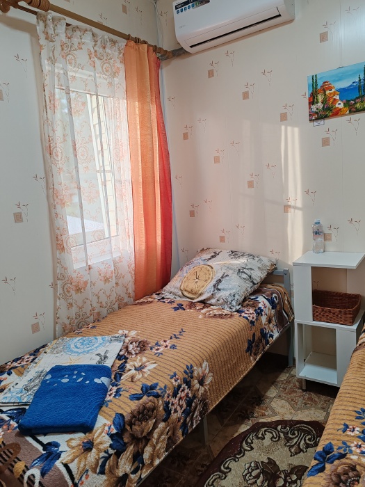 В комнате стандартный набор мебели, постельное белье, полотенца, сплит-система. В доме общая кухня оборудованная всем необходимым для самостоятельного приготовления пищи. Душ и туалет в холле, туалетные принадлежности и фен.