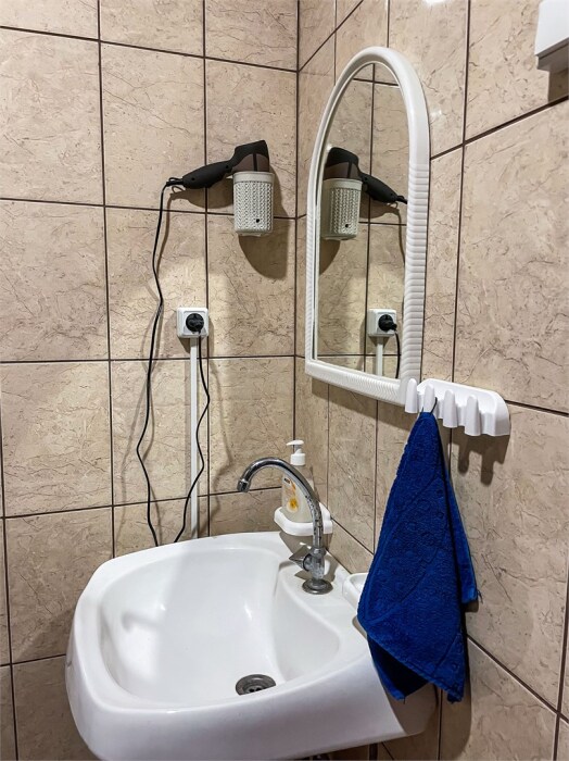 В комнате стандартный набор мебели, постельное белье, полотенца, сплит-система, телевизор. В доме общая кухня оборудованная всем необходимым для самостоятельного приготовления пищи. Душ и туалет в холле, туалетные принадлежности и фен.