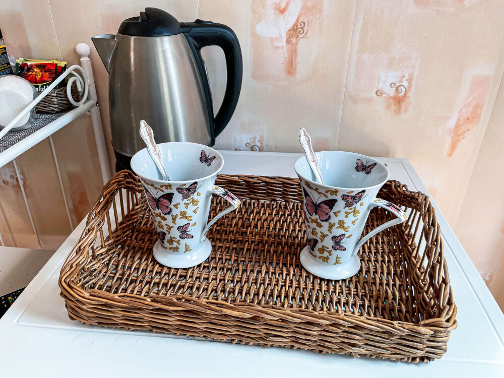 В комнате стандартный набор мебели, постельное белье, полотенца, напольный кондиционер. В доме общая кухня оборудованная всем необходимым для самостоятельного приготовления пищи. Душ и туалет в холле, туалетные принадлежности и фен.