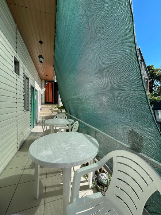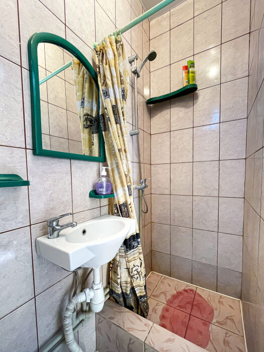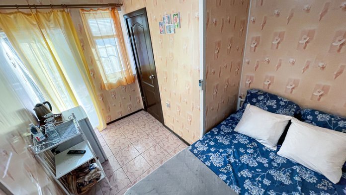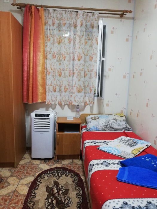 В комнате стандартный набор мебели, постельное белье, полотенца, мобильный кондиционер. В доме общая кухня оборудованная всем необходимым для самостоятельного приготовления пищи. Душ и туалет в холле, туалетные принадлежности и фен.
