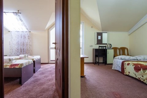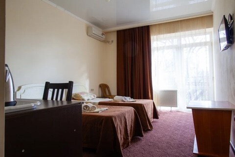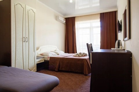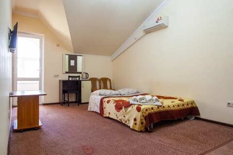 Гости смогут оценить идеальное сочетание цены и качества предлагаемых услуг. Главная забота всего персонала сделать так, чтобы гостям было удобно и уютно. Поэтому в каждом номере есть Wi-Fi , сплит-система, холодильник, плазменный ТВ, душ, фен, сейф, удобная мебель.