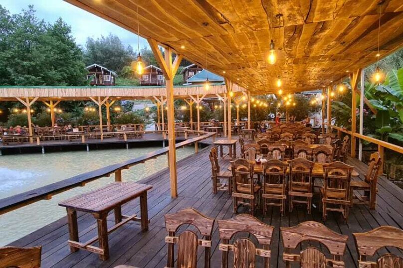 Для рыбалки и пикника, к услугам гостей просторные и уютные беседки (вместимость до 10 человек) по берегу вокруг озера, и уютные срубы (вместимостью 4-6 и 20-35 человек) на острове.