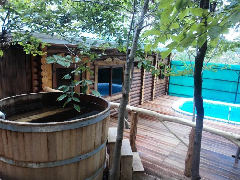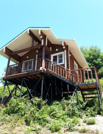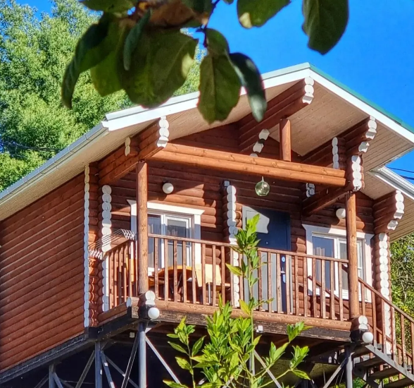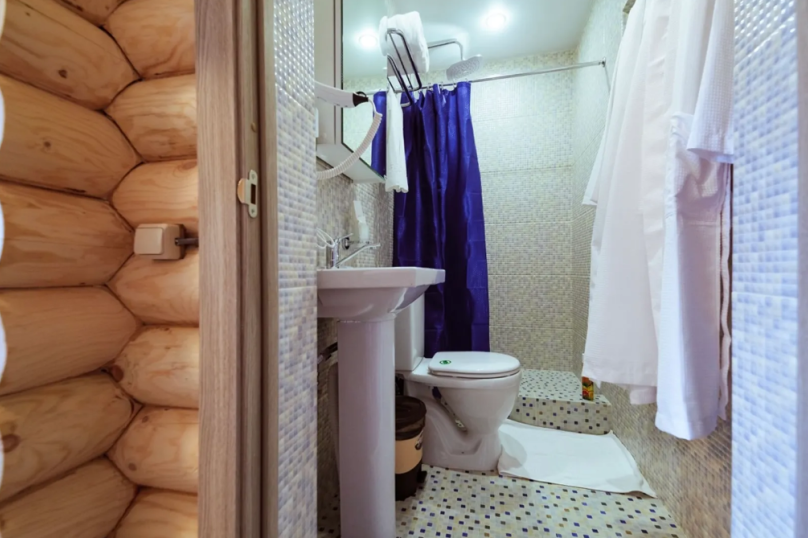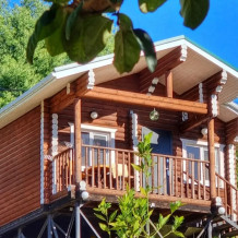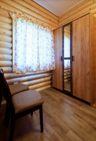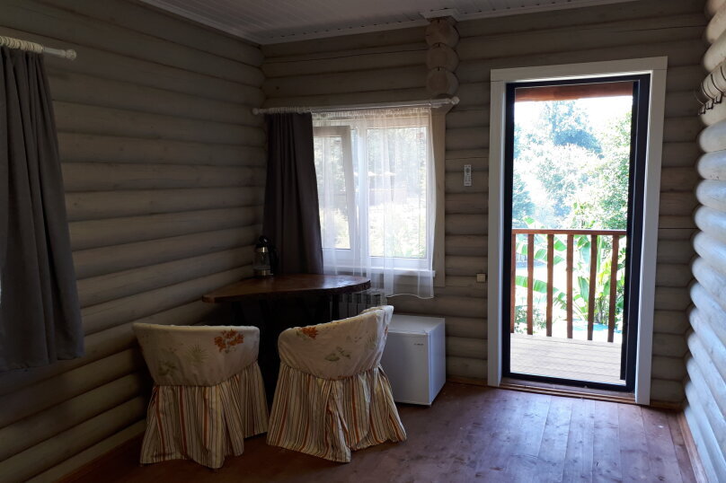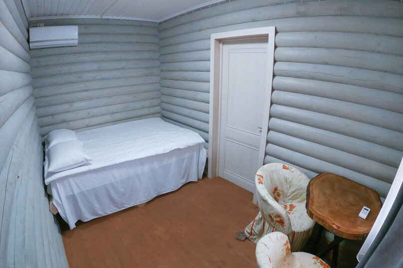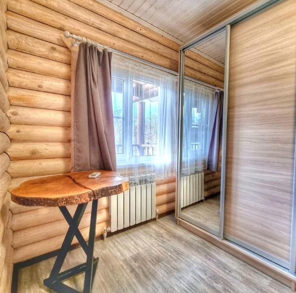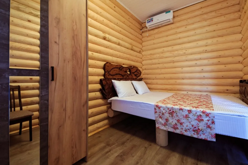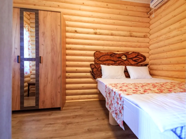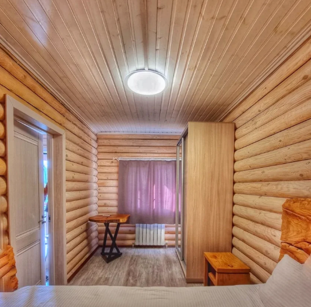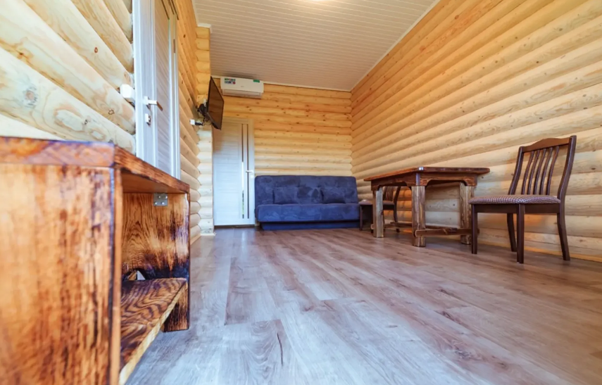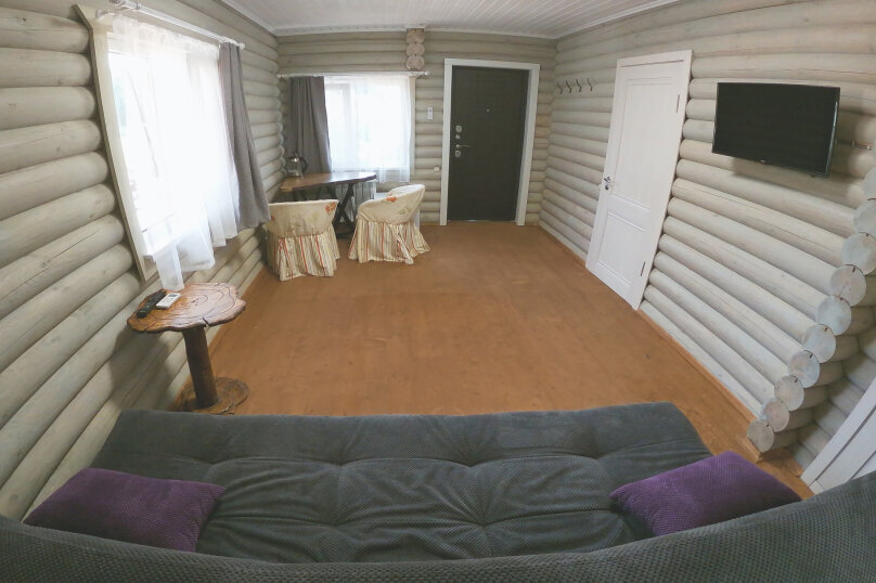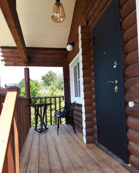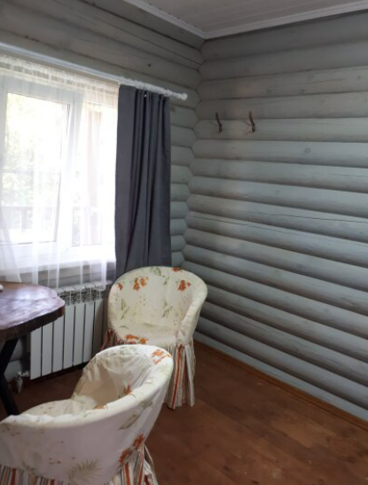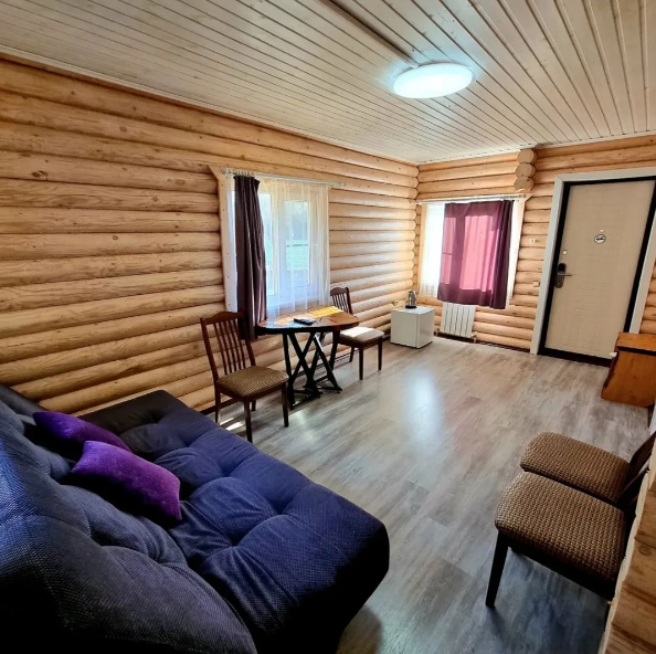 Коттедж из сруба, две комнаты, 4 спальных места, туалет, душ, маленькая терраса.