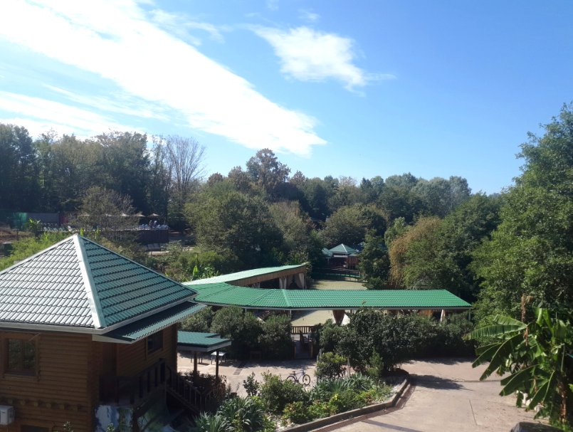 По территории всего комплекса свободно гуляют павлины, римские гуси, утки, цесарки, индо-утки, декоративные петушки, лебеди и другая живность. Животных можно покормить с рук.