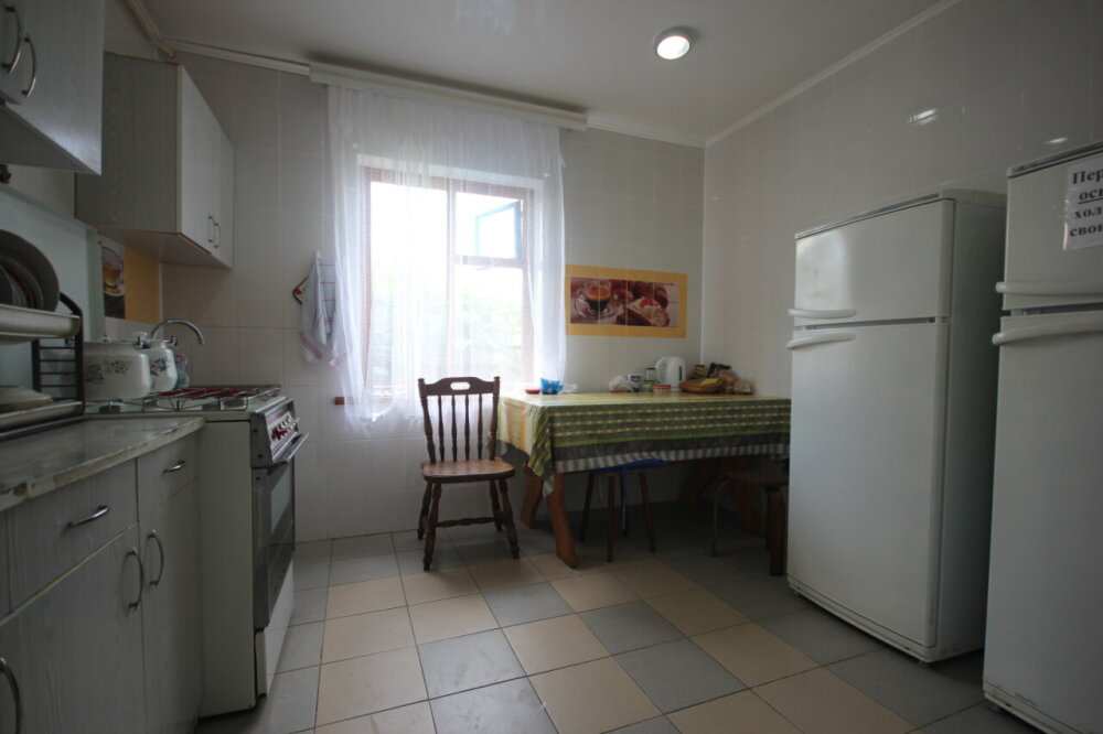 В гостевом доме есть кухни, где постояльцы могут самостоятельно приготовить пищу. Кухни оборудованы холодильниками и газовыми плитами. Водоснабжение постоянное, круглосуточно гостям доступна горячая и холодная вода.
