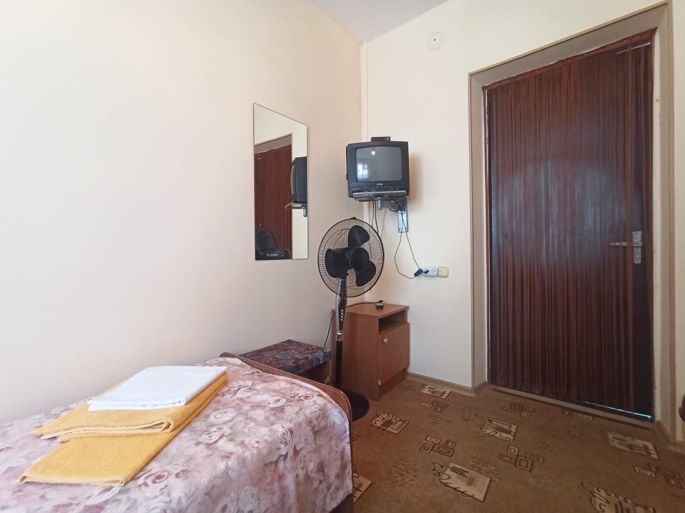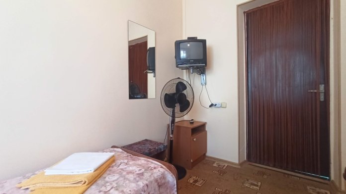 В номере есть вентилятор. Душ и туалет общие на этаже.