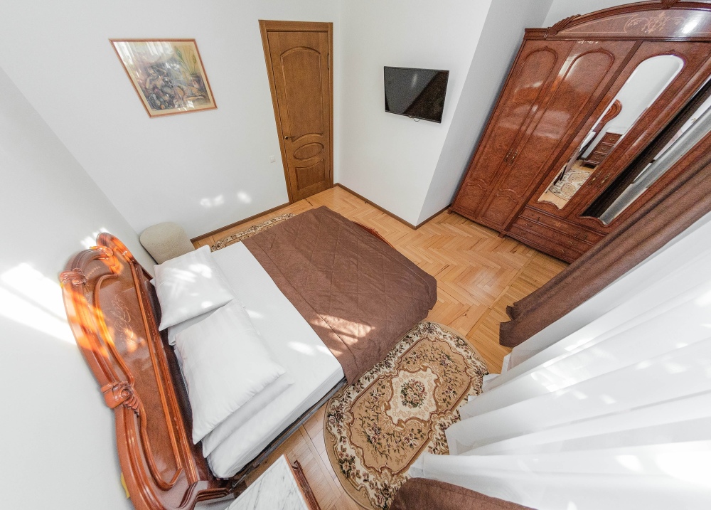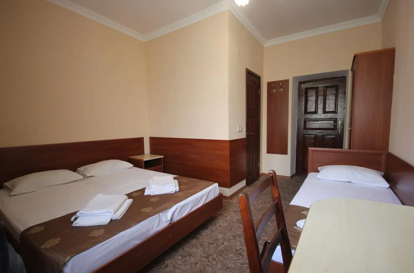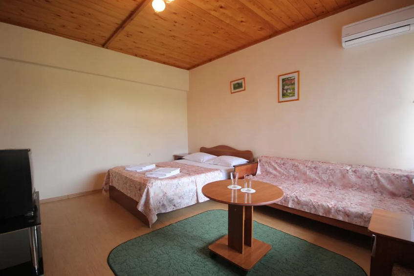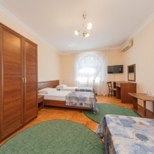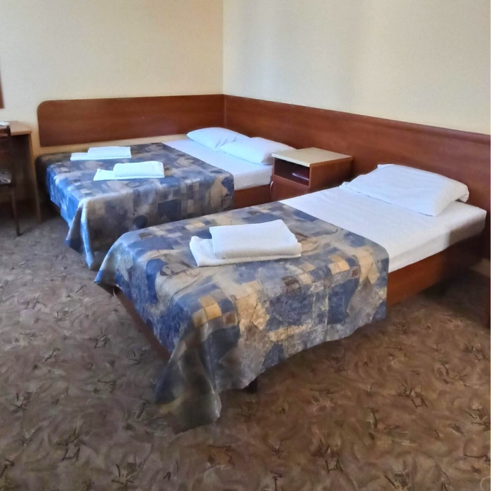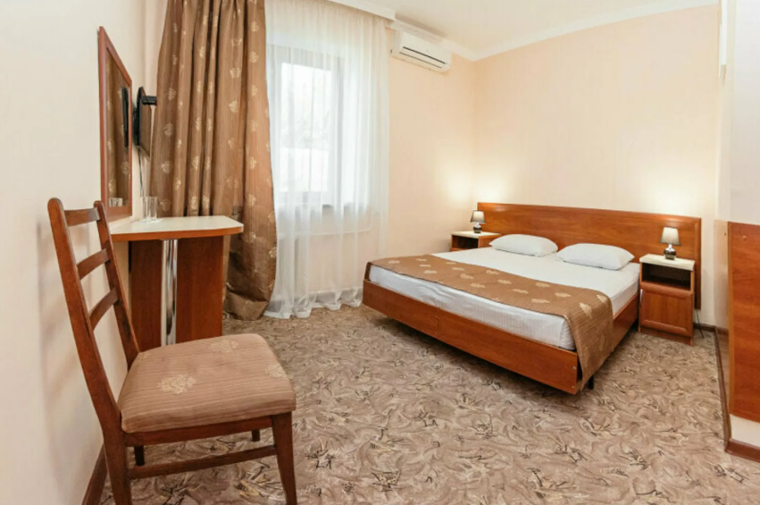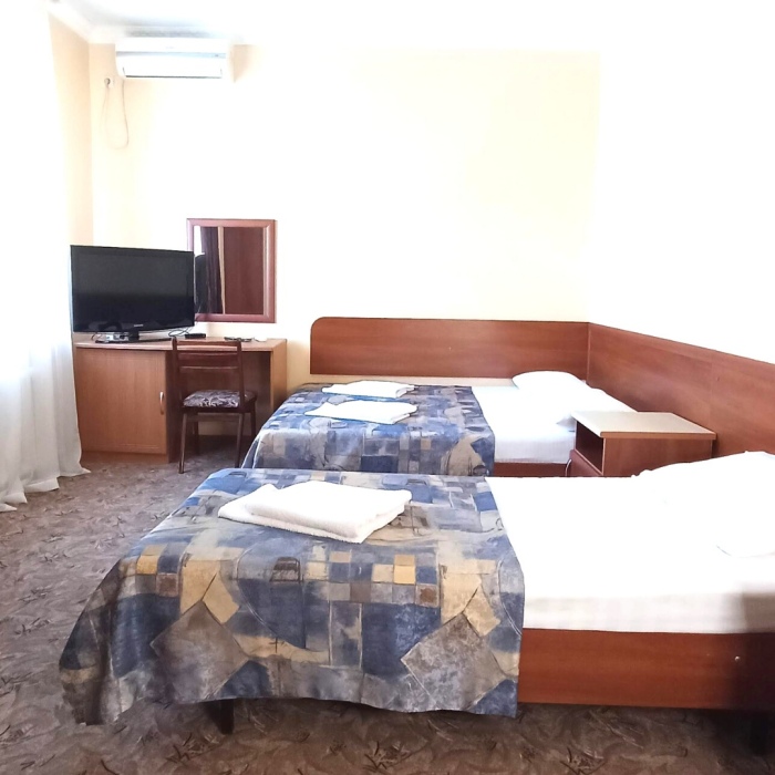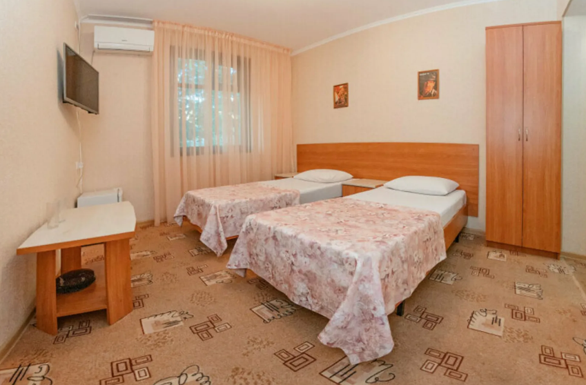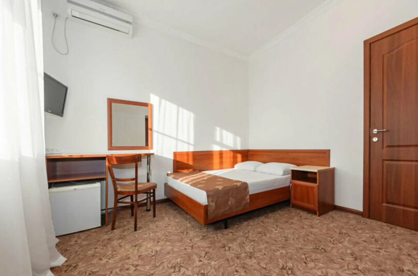 Номера категории «Стандарт» однокомнатные, рассчитанные на размещение двух гостей. В номерах имеются все необходимые удобства: двухспальная или две односпальные кровати, прикроватные тумбочки, шкаф, телевизор, кондиционер. В данных номерах гостевого дома есть собственная ванная комната, где установлен душ.