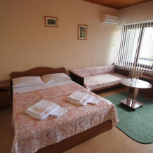 Номера категории «Комфорт» однокомнатные, рассчитаны на размещение от двух до трех гостей. В данных номерах гостевого дома есть необходимые удобства: одна двуспальная или от 1 до 3 односпальных кроватей, прикроватные тумбочки, на окнах москитные сетки, есть телевизор, холодильник, кондиционер. В туалетной комнате установлен душ.