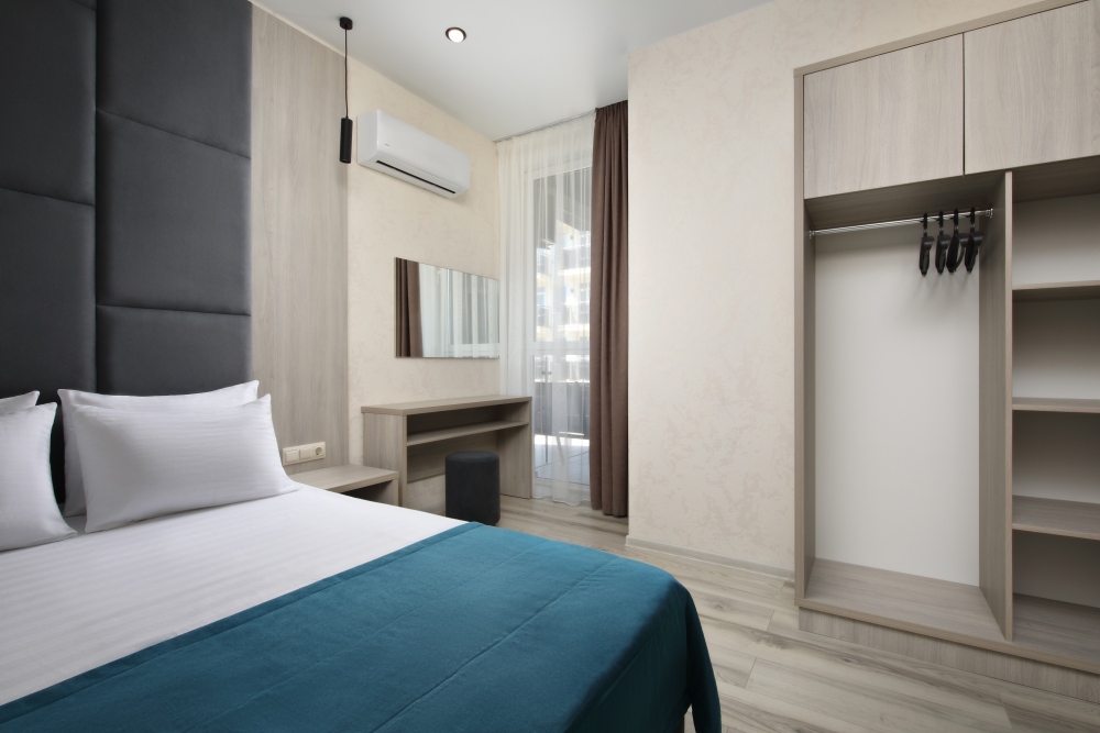 Уютный однокомнатный номер с двуспальной либо с двумя односпальными кроватями и балконом.