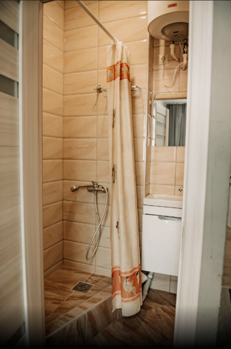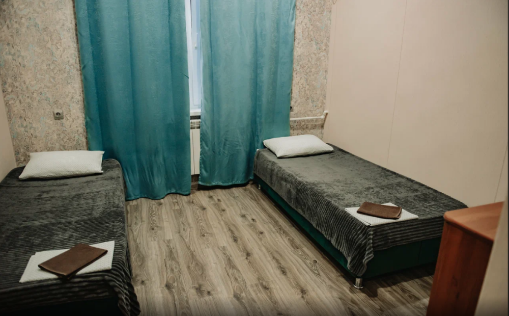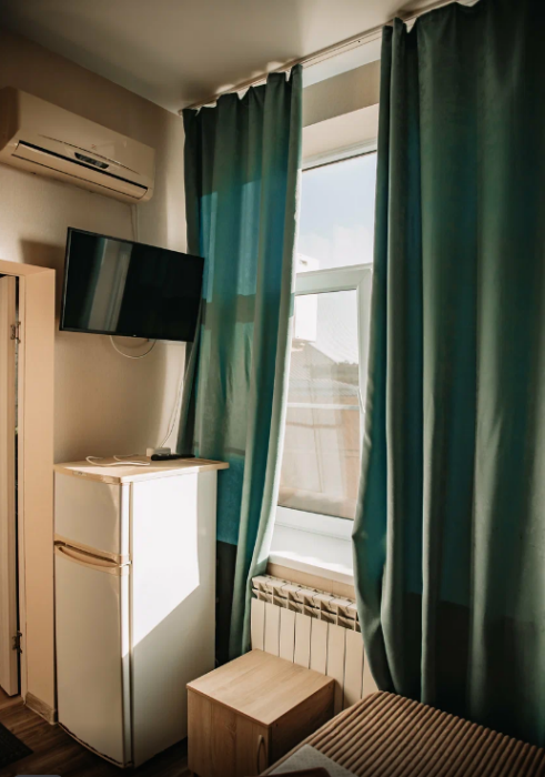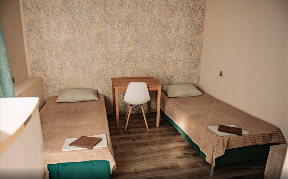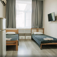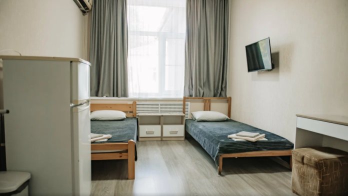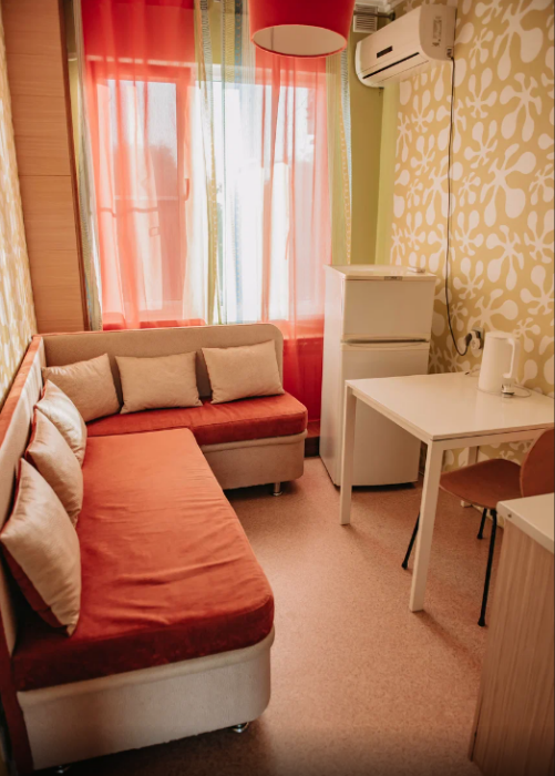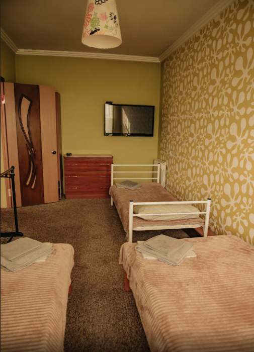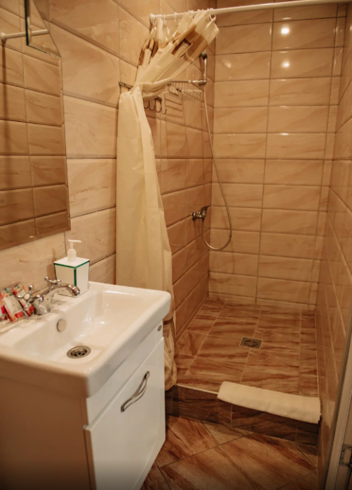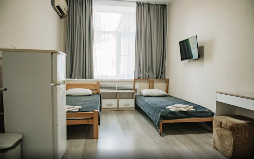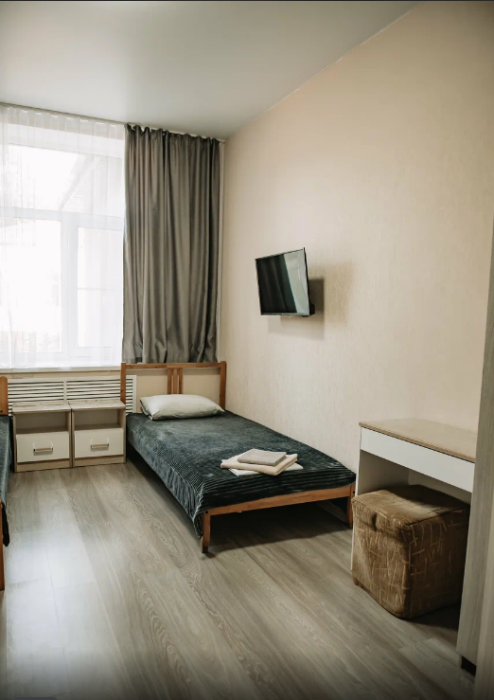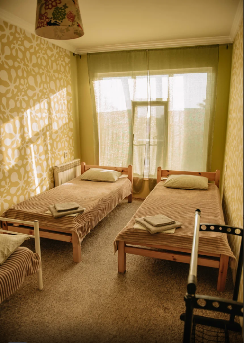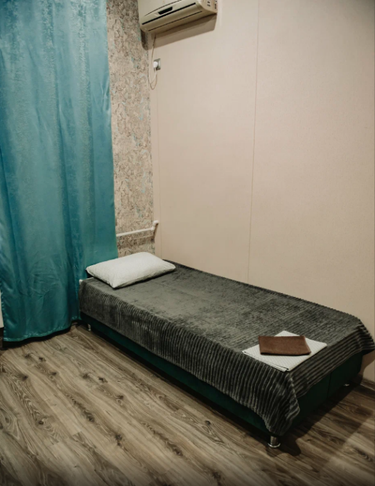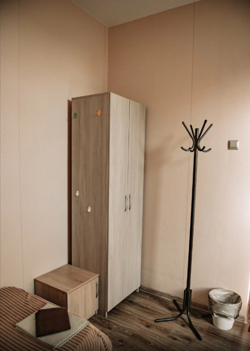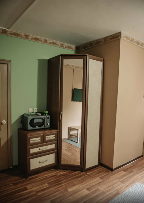 Номер с общим душем и туалетом, на этаже есть кухня общего пользования.