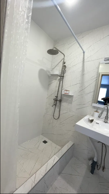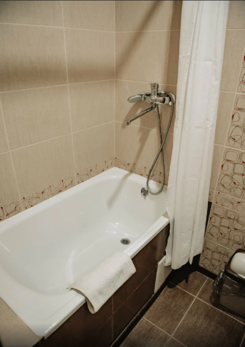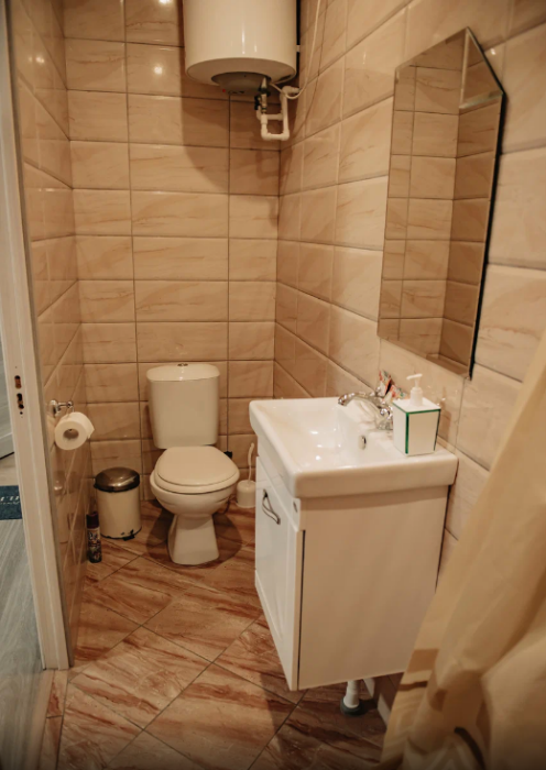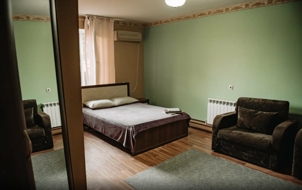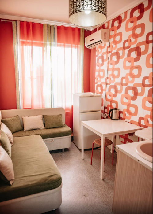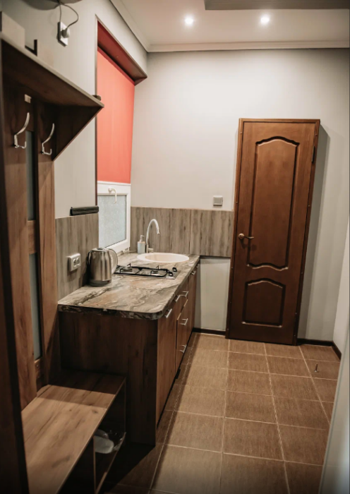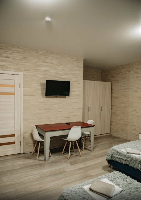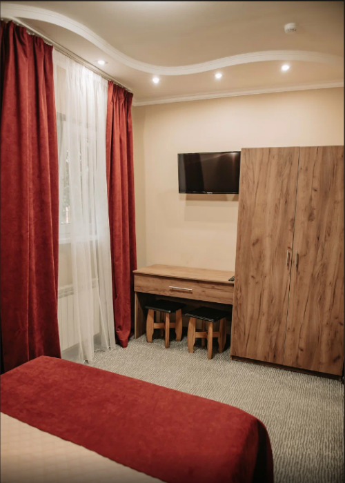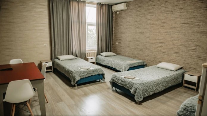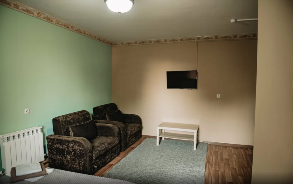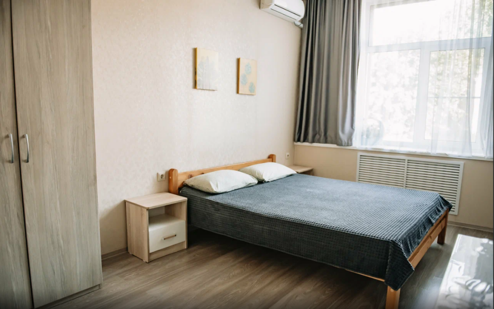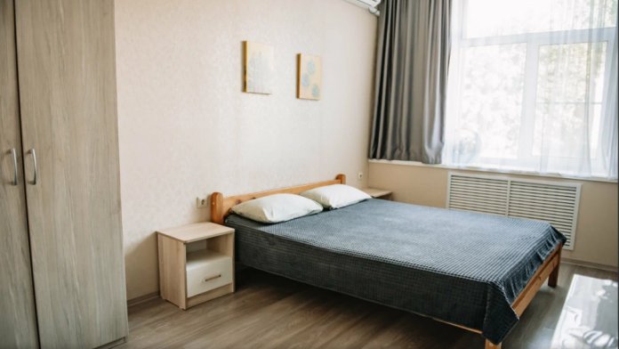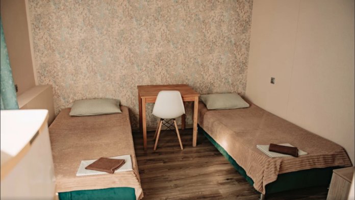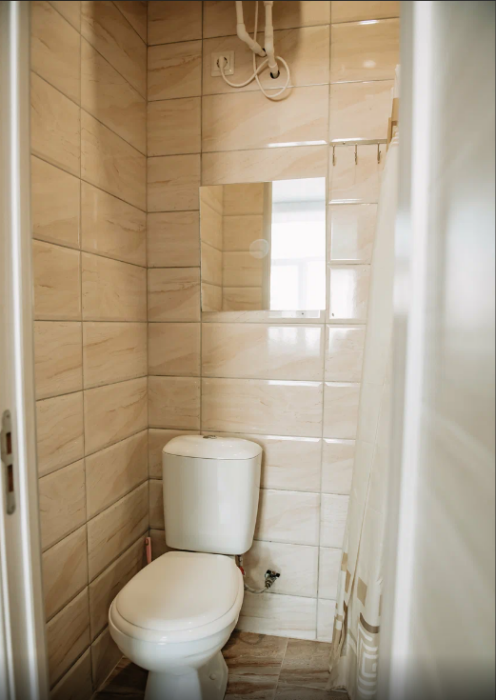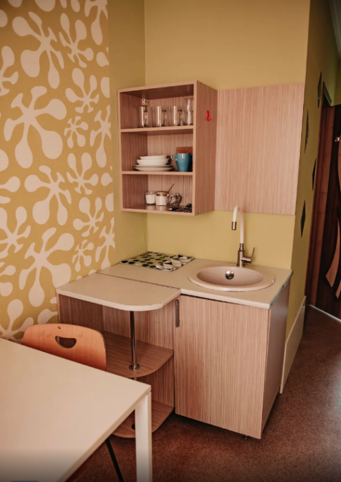 Номер с общим душем и туалетом, на этаже есть кухня общего пользования.