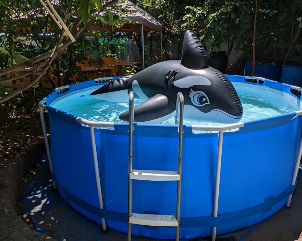 На территории есть общая кухня с холодильниками, плитами, СВЧ печью, электрочайниками, посудой. Сауна, сезонный бассейн, зона барбекю, детская площадка, батут, автостоянка.
