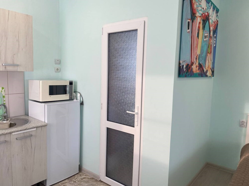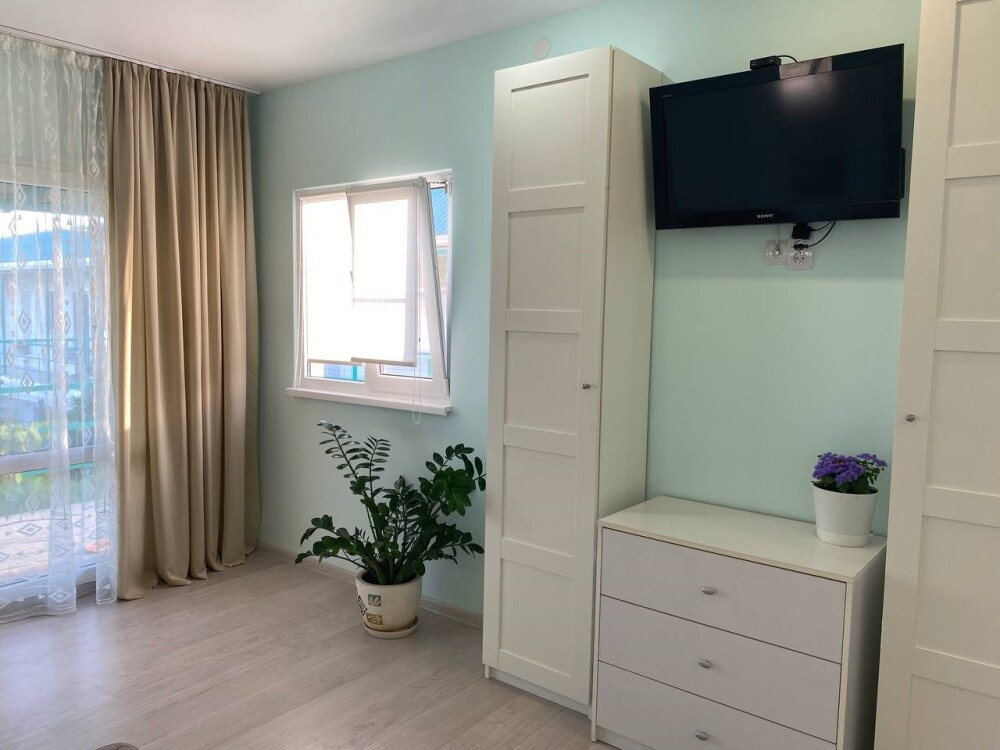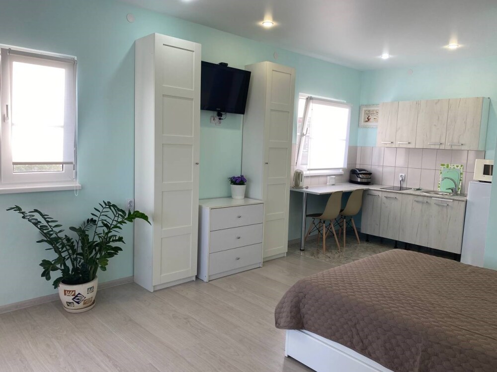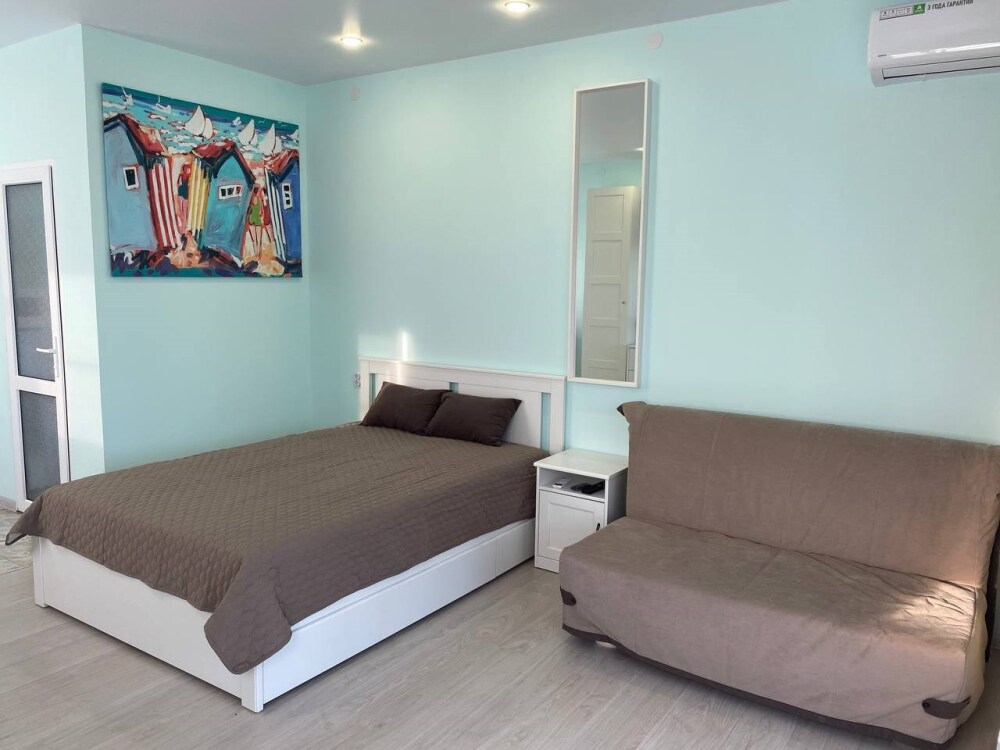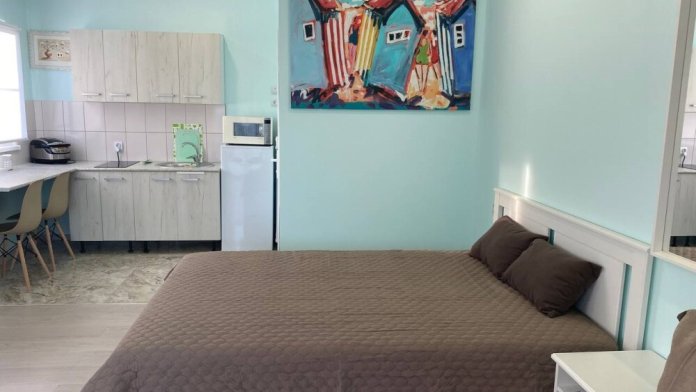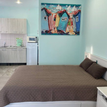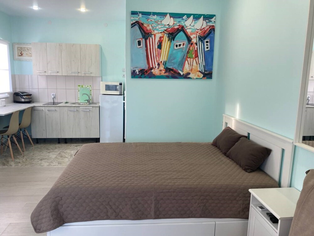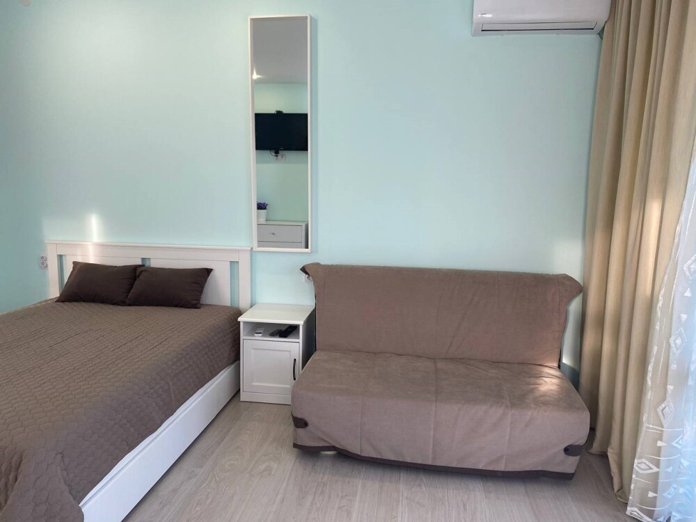 В номере есть две просторные двухспальные кровати, одна из которых раскладной диван кровать. Удобная и современная душевая комната и туалет. В номере также имеется кондиционер, телевизор и Wi-Fi. Кроме того, номер-студия обладает балконом с видом на море, где Вы сможете наслаждаться свежим воздухом и удивительным панорамным видом на морскую гладь. Номер-студия с балконом и видом на море - идеальное место для отдыха и релаксации. Насладитесь великолепным обслуживанием и уютной атмосферой в нашем номере-студии.