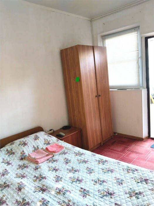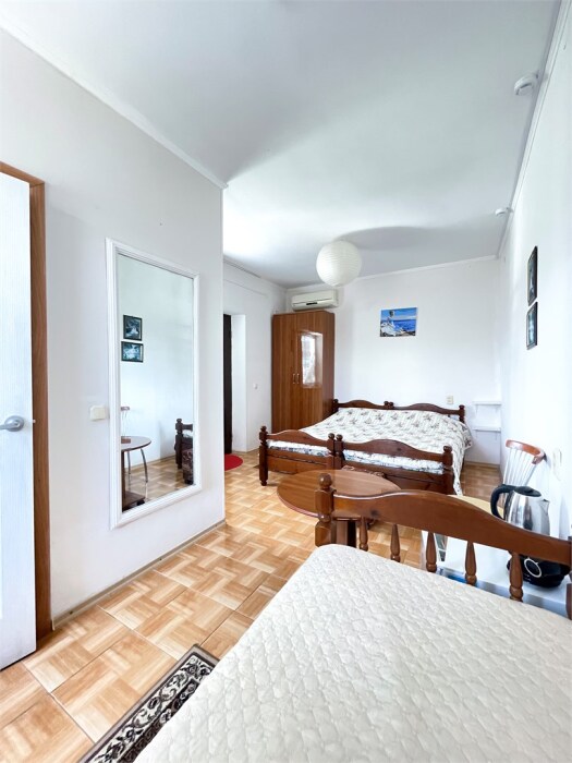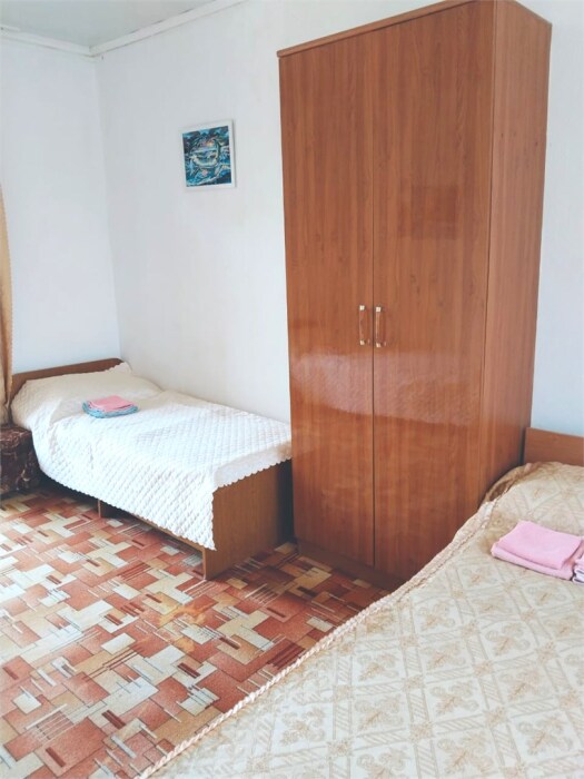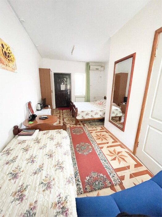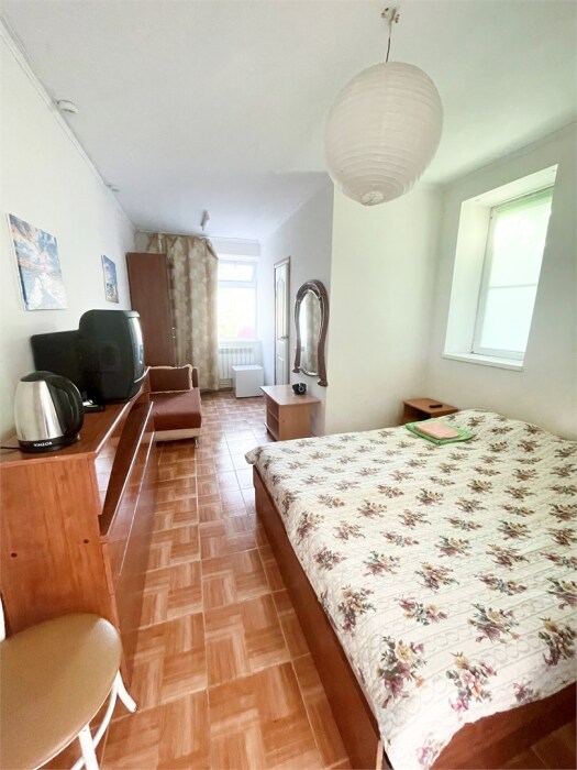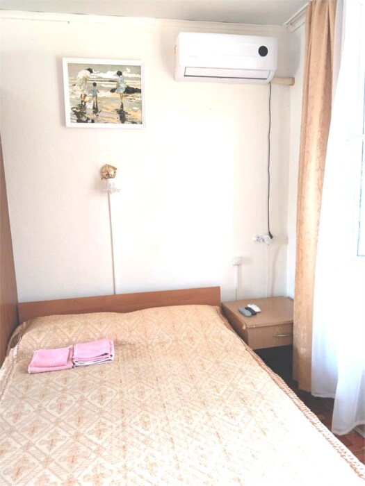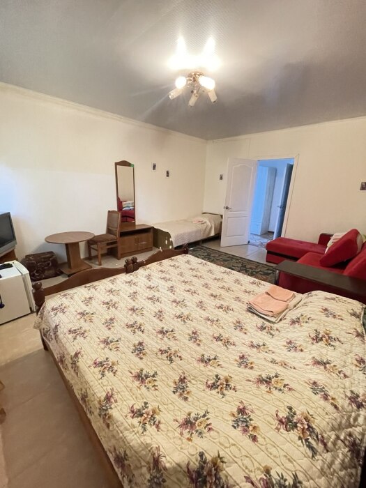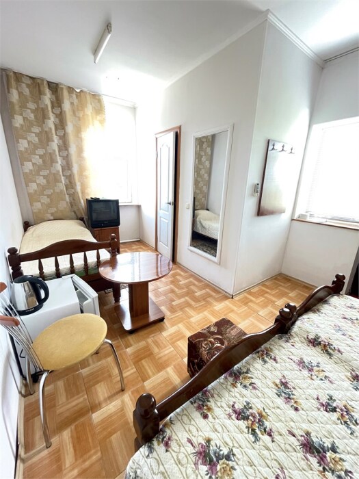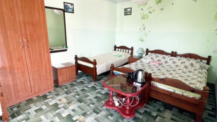 В номере одна двуспальная и две односпальные кровати или четыре односпальные кровати.