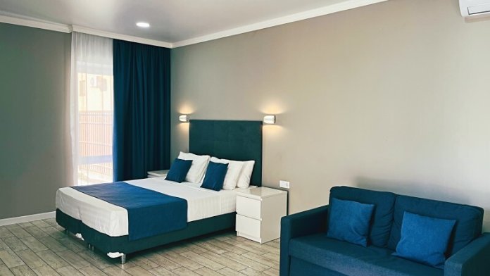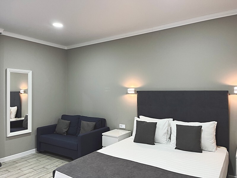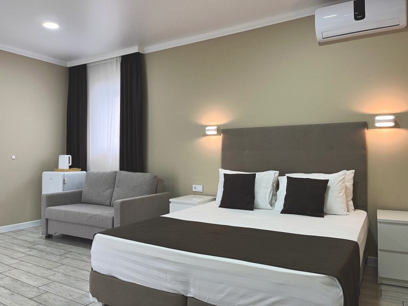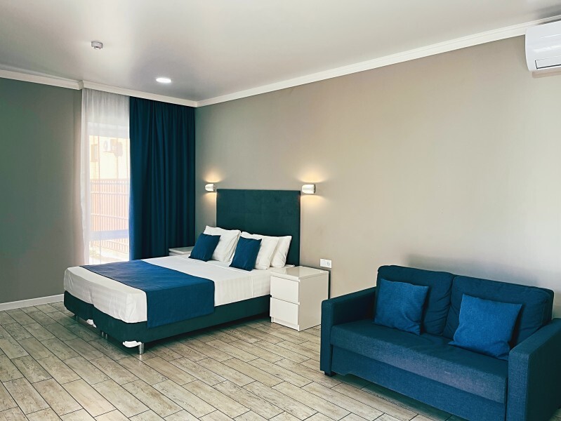 Номер категории «Семейный». Расположен на втором этаже отеля, имеет собственную террасу с обеденным столом и креслами. Оснащен всем необходимым для комфортного проживания самых искушенных гостей.