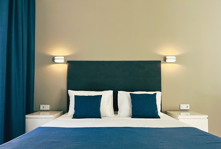 Семейный номер категории «Люкс с видом на море». Расположен на втором этаже отеля, имеет собственную террасу с обеденным столом и креслами. Оснащен всем необходимым для комфортного проживания самых искушенных гостей.
