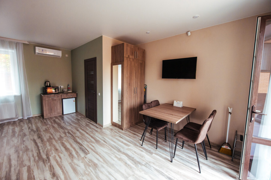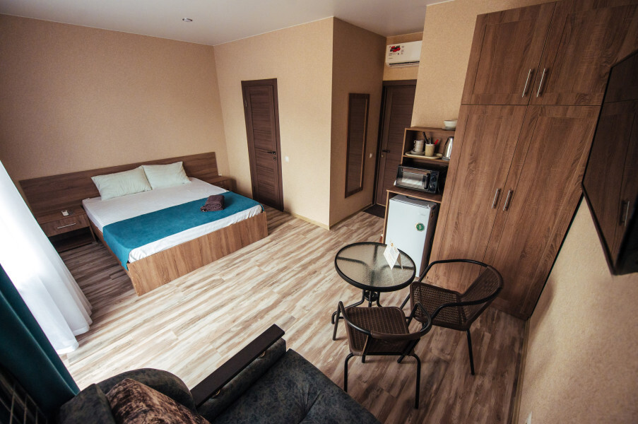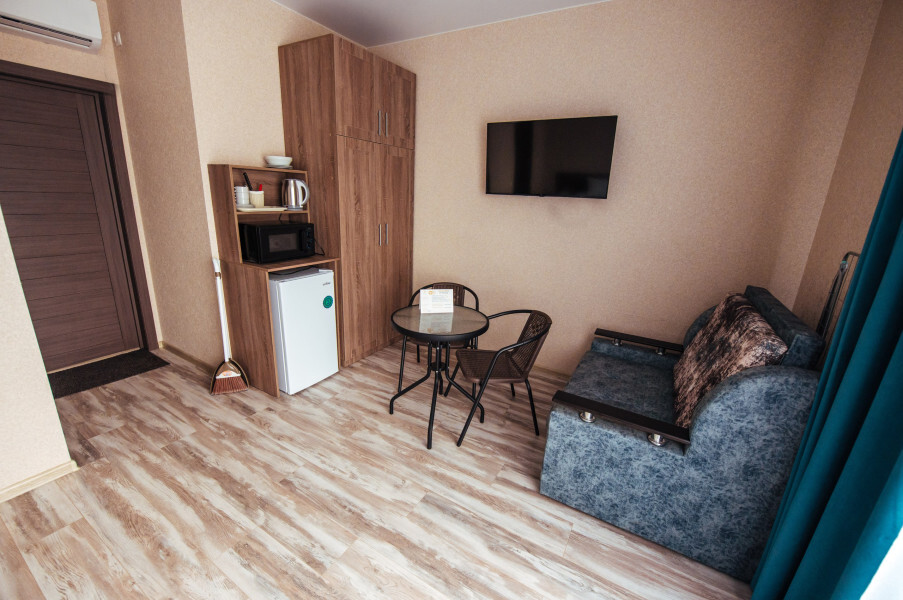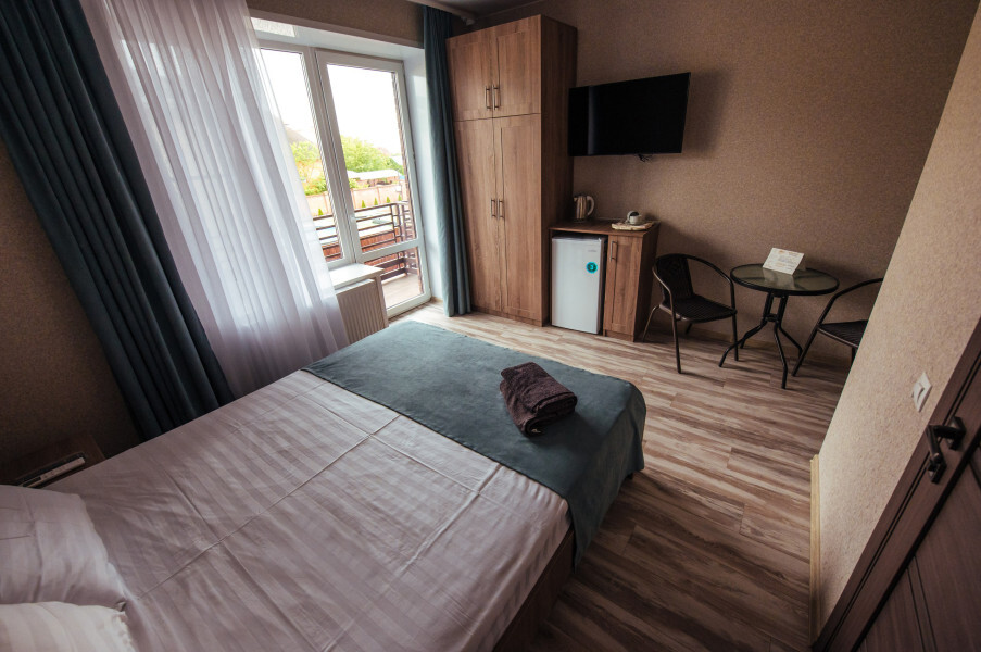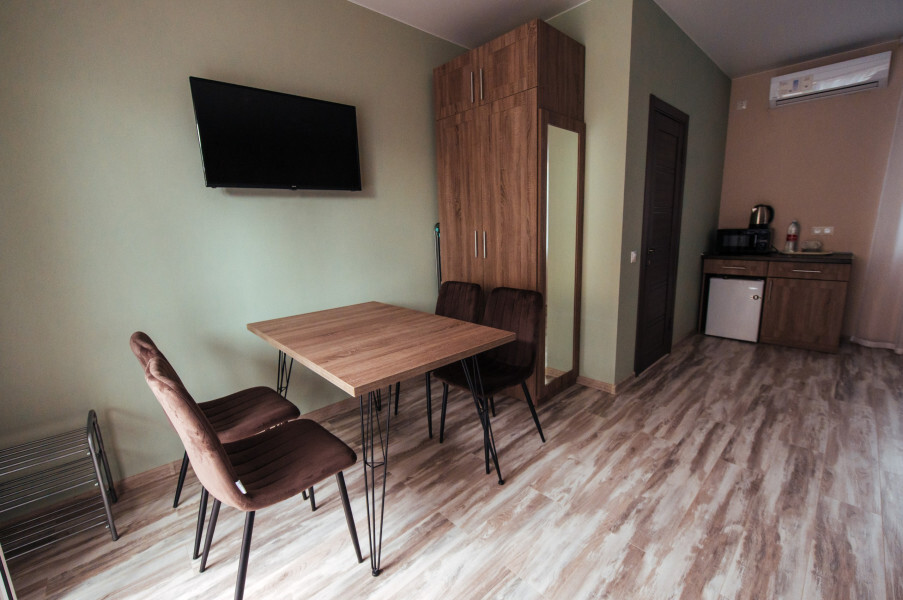 Номер с отдельным входом, расположенный на первом этаже гостевого дома. Имеет собственную террасу с обеденным столом и креслами.