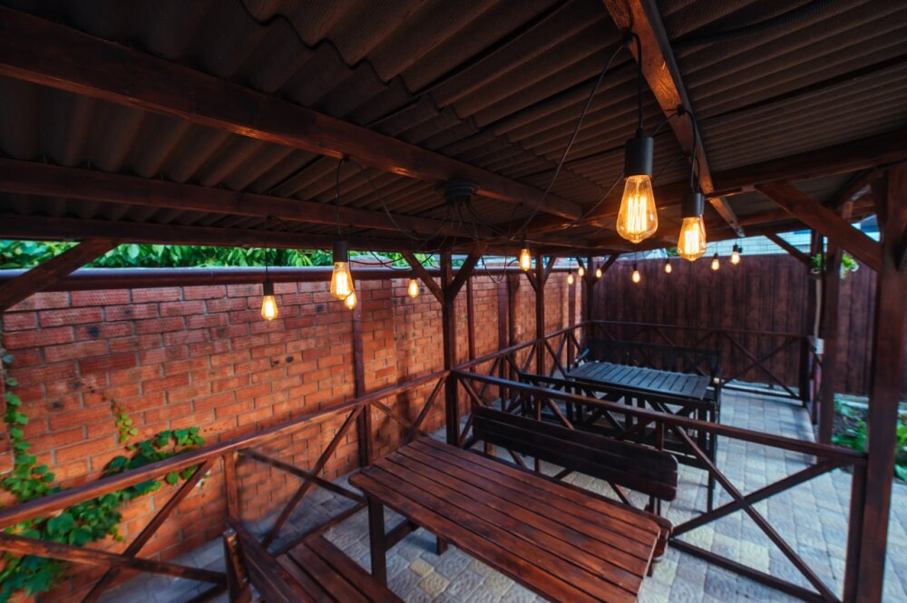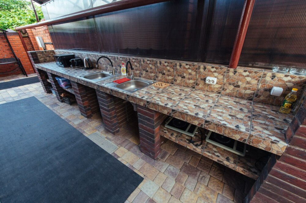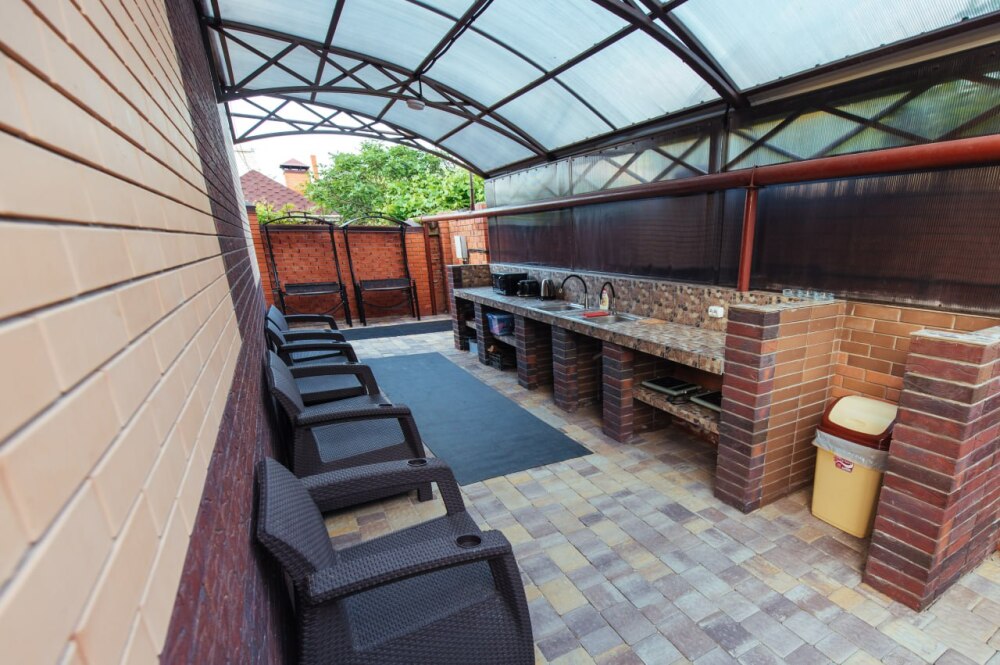 На территории есть общая летняя кухня, а для маленьких постояльцев - детская площадка. В этом году каждую среду к нам в гости будут приходить герои любимых мультиков и фильмов.