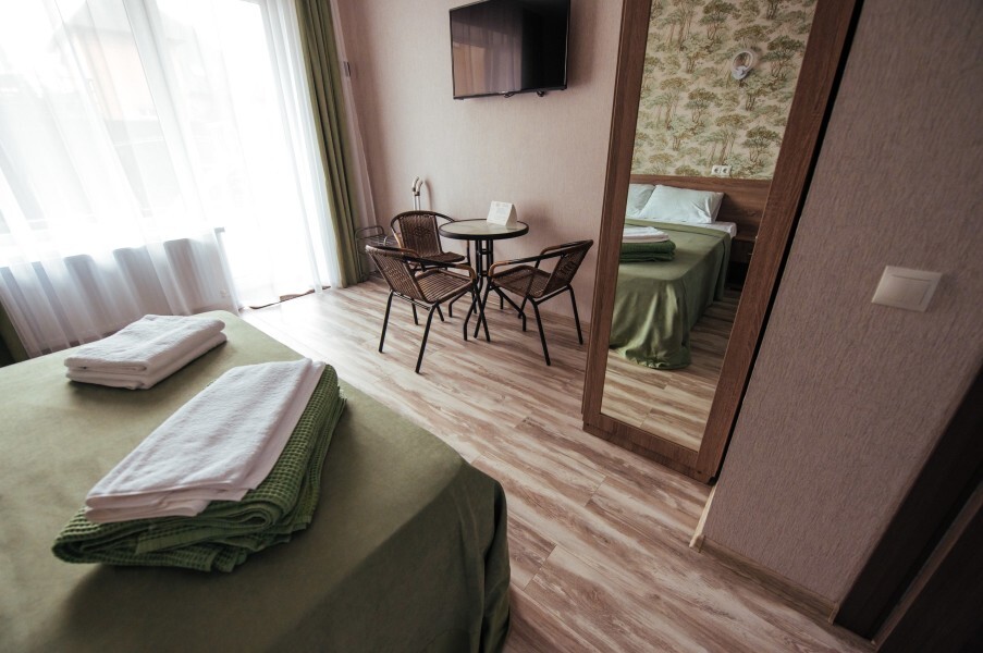 Трёхместный – уютный, светлый номер, для комфортного размещения семьи или компании взрослых.