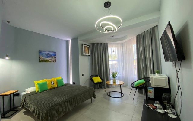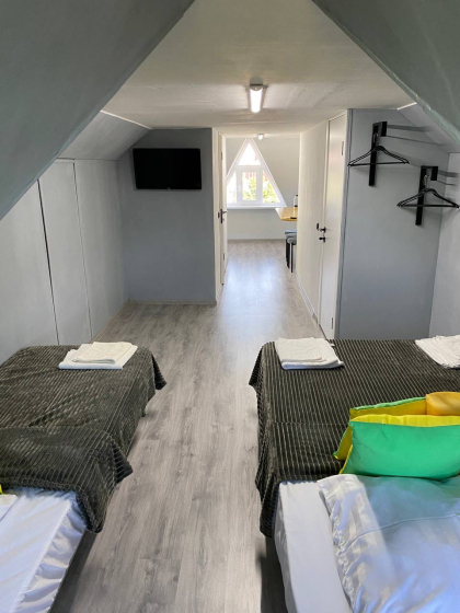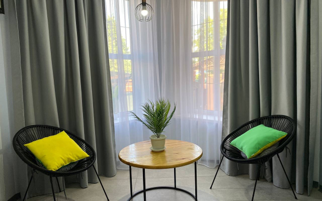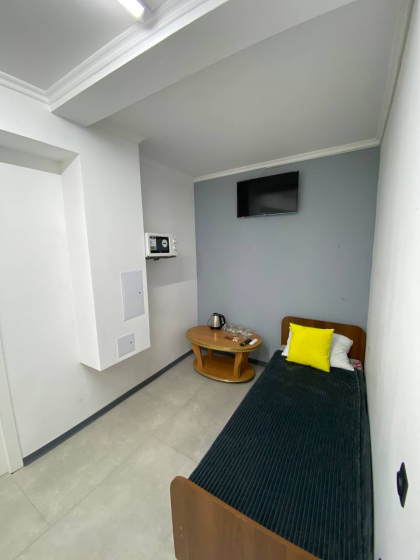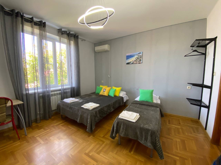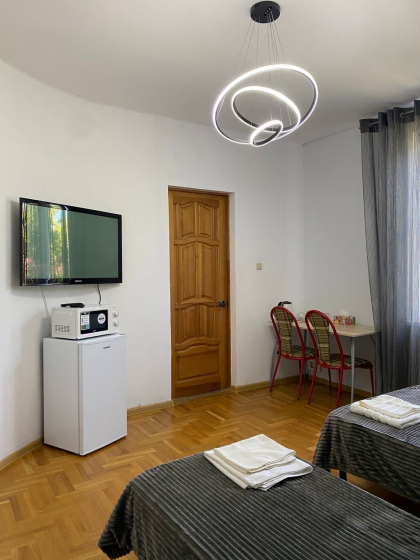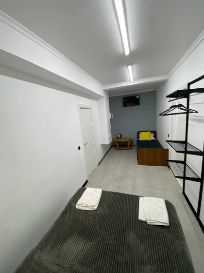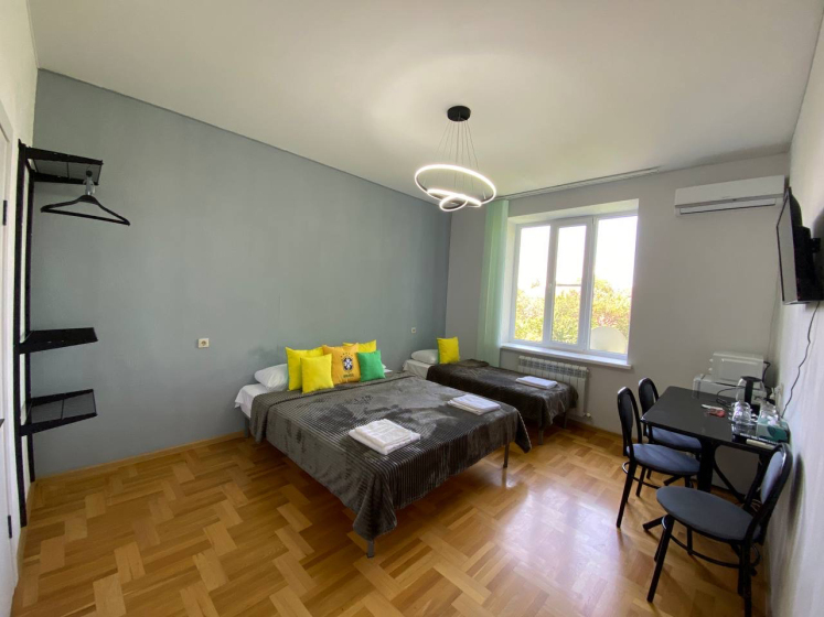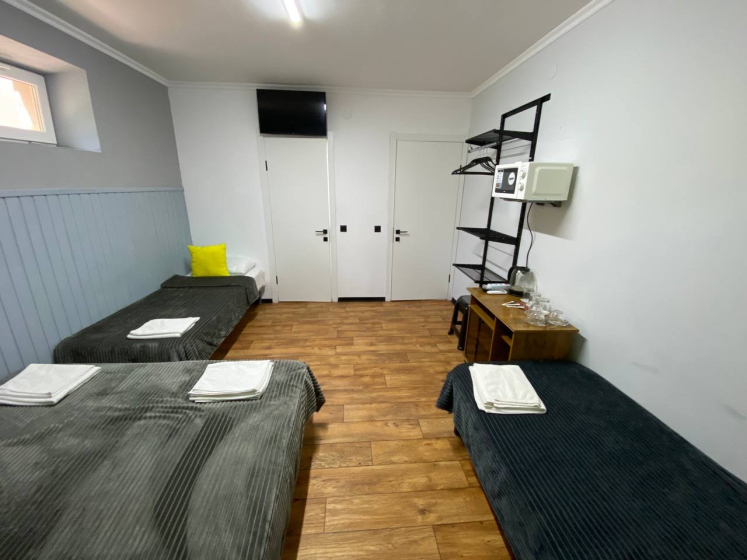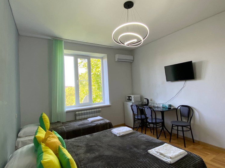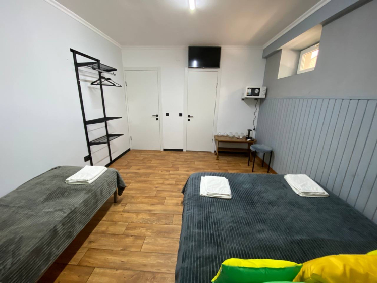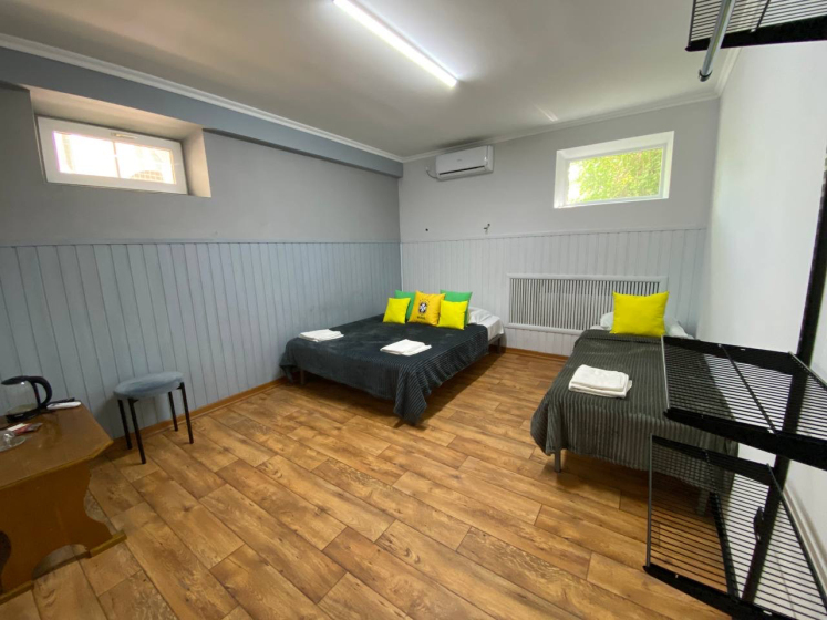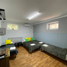 Номер оборудован всем необходимым для хорошего отдыха. Имеется 2-спальная кровать и раскладушка. Максимальная вместительность 4 взрослых, 1 ребенок до 5 лет (ребенок размещается бесплатно и без выделения отдельного места). Номера располагаются на нулевом (цокольном) этаже.