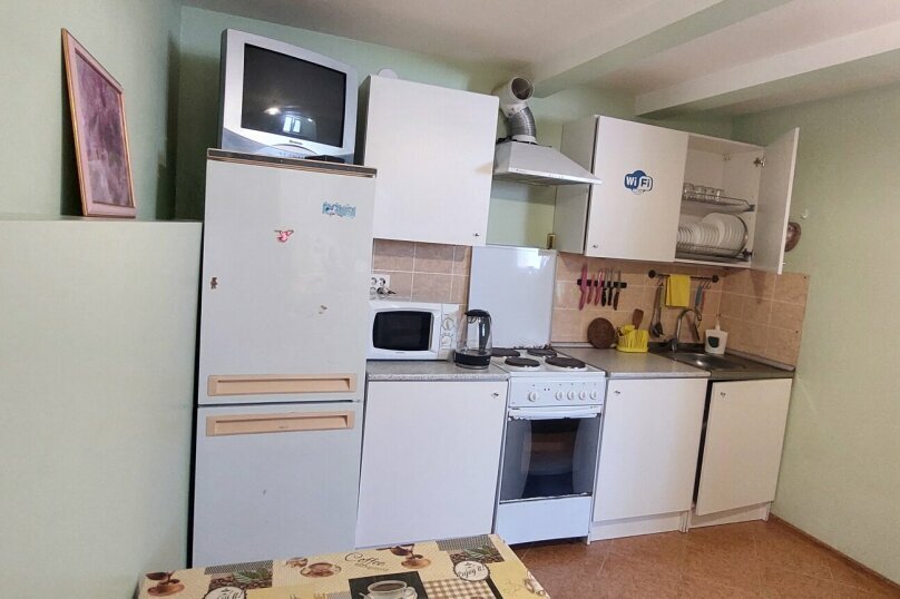 Все удобства: сплит-система, телевизор, стиральная машина, холодильник, микроволновая печь, бесплатный Wi-Fi, вода круглосуточно. Во дворе: навес, столик со стульями, мангал, место для авто.