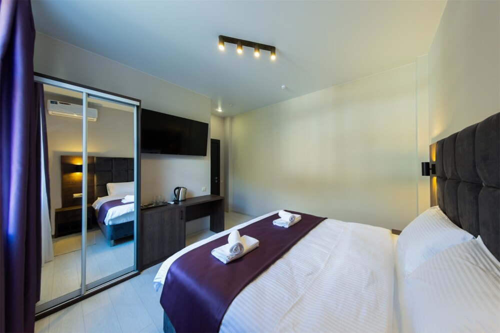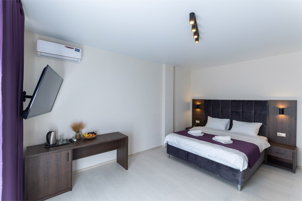 Стандартный номер с кроватью размером king-size с постельным бельём премиум качества. Номера как с частичным видом на горы, так и с видом во двор. В номере: телевизор, душ, фен, банные принадлежности, холодильник, рабочий стол,стул, чайник, кружки/стаканы, чай, кофе, шкаф с зеркалом во весь рост.