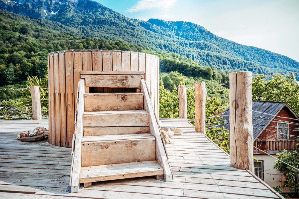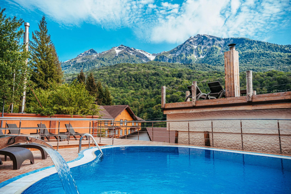 Открытый бассейн с подогревом на территории с оборудованной зоной отдыха. Плавая в бассейне или загорая на шезлонге можно наслаждаться красивым видом на горы. Бассейн работает круглогодично. Для спортсменов у нас есть беговая дорожка и велотренажер. А открытая веранда летом становится идеальным местом для занятий йогой.