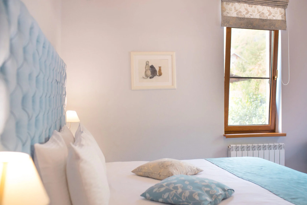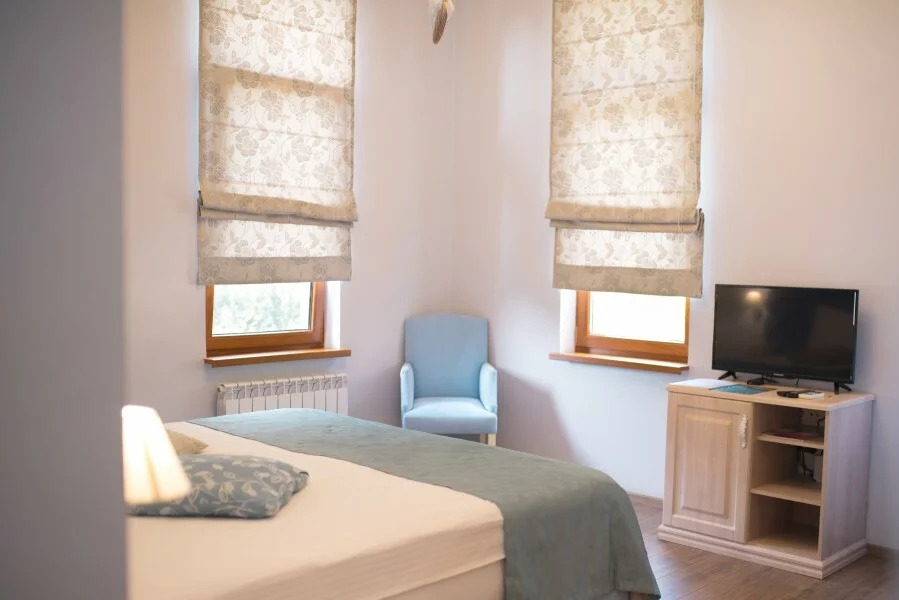 Светлый, просторный и уютный номер с шикарным видом на горы. Любимый номер наших гостей. Номера оформлены в светлых тонах и оснащенные всем необходимым: мини-бар, телевизор, кондиционер, чайный сет. Номера располагаются на первом и втором этажах. Из окон открывается прекрасный вид на горы.