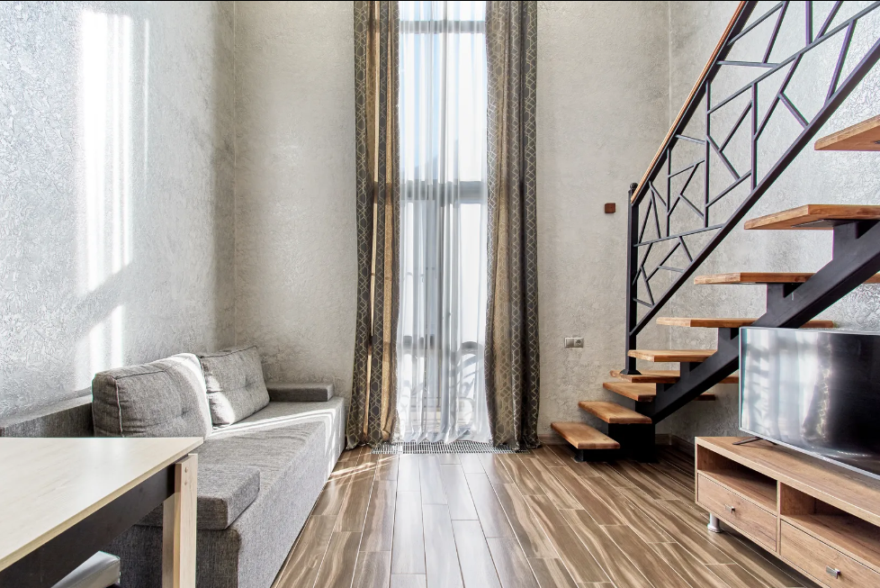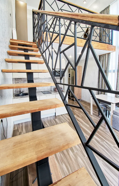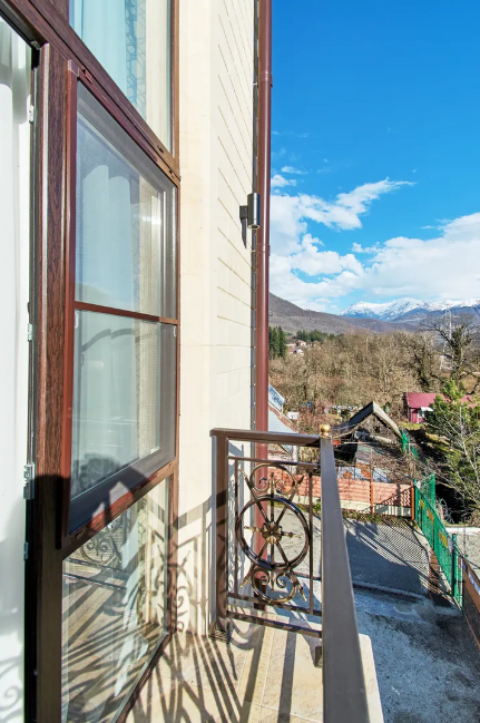 Двухуровневые апартаменты с двумя спальнями и балконом с видом на горы.