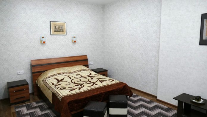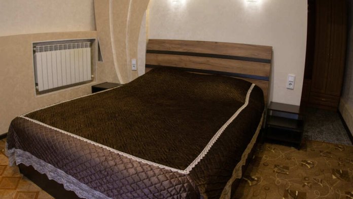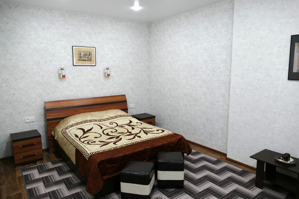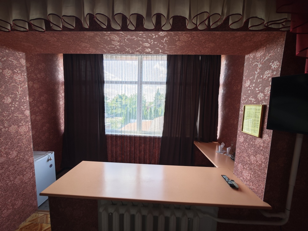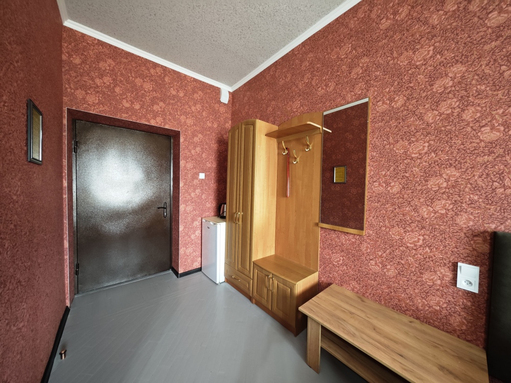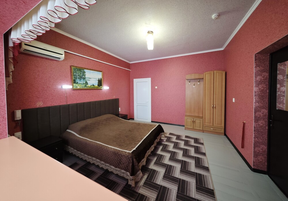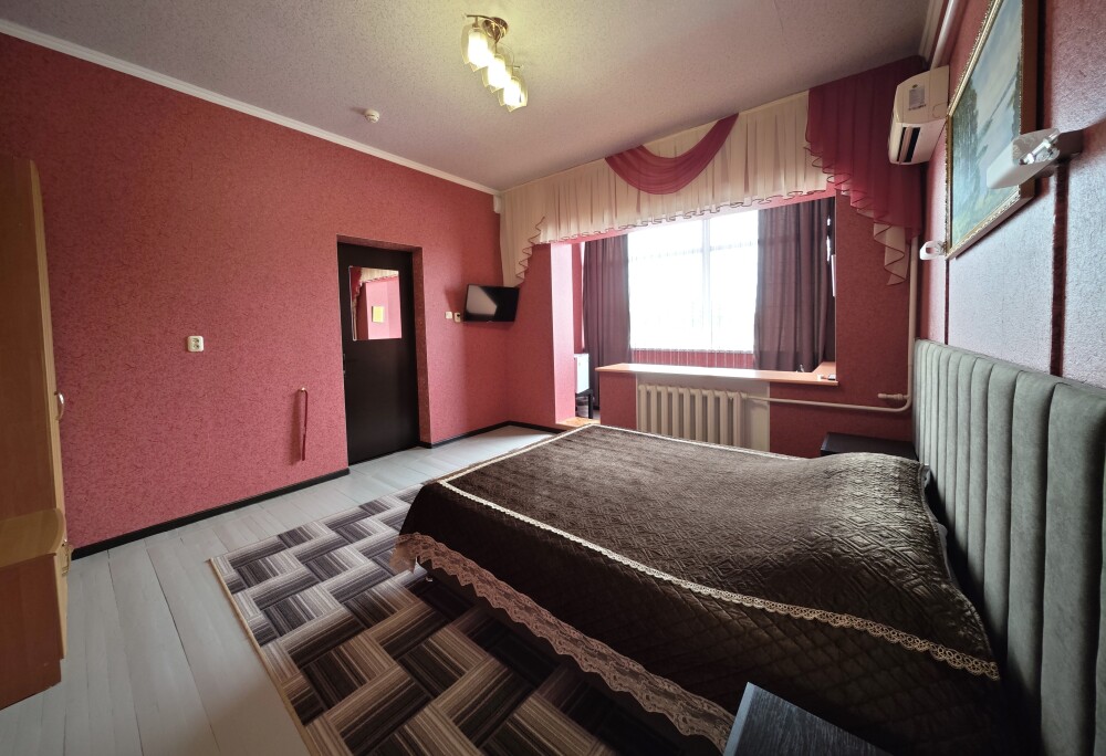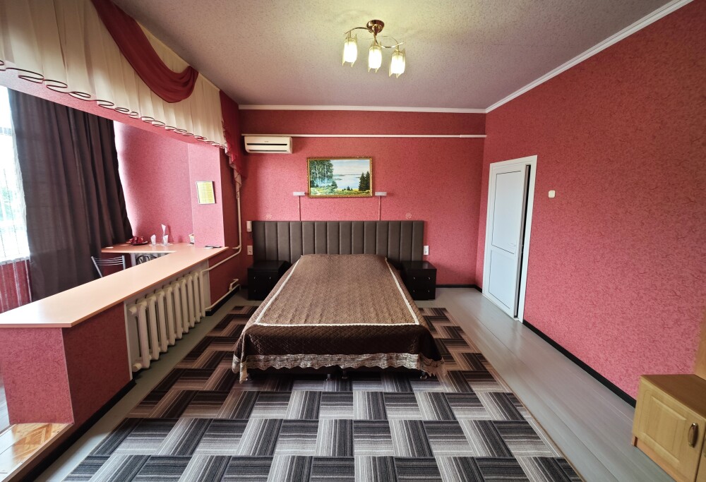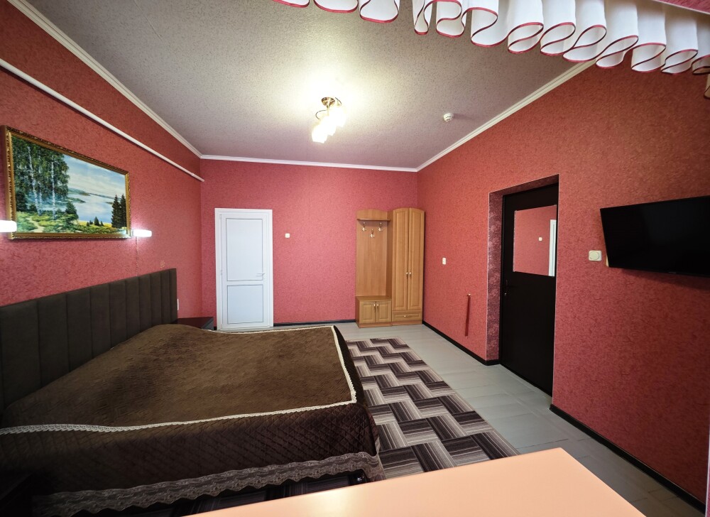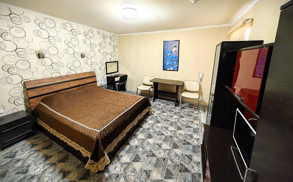№15. Уютный улучшенный номер находится на первом этаже и отвечает всем современным требованиям комфорта. Оснащение номера: оборудован двуспальной кроватью, телевизор с плоским экраном 32», сплит система, холодильник, чайник, журнальный столик с необходимой посудой и многое другое. В ванной комнате: душ, туалет, фен, бесплатные гигиенические принадлежности: мыло, шампунь, комплект полотенец. Утюг с гладильной доской находится на этаже.