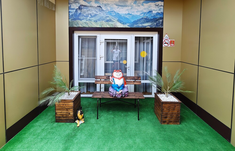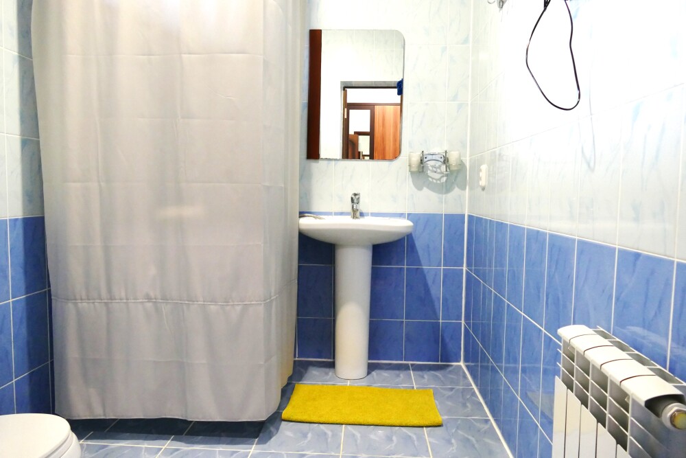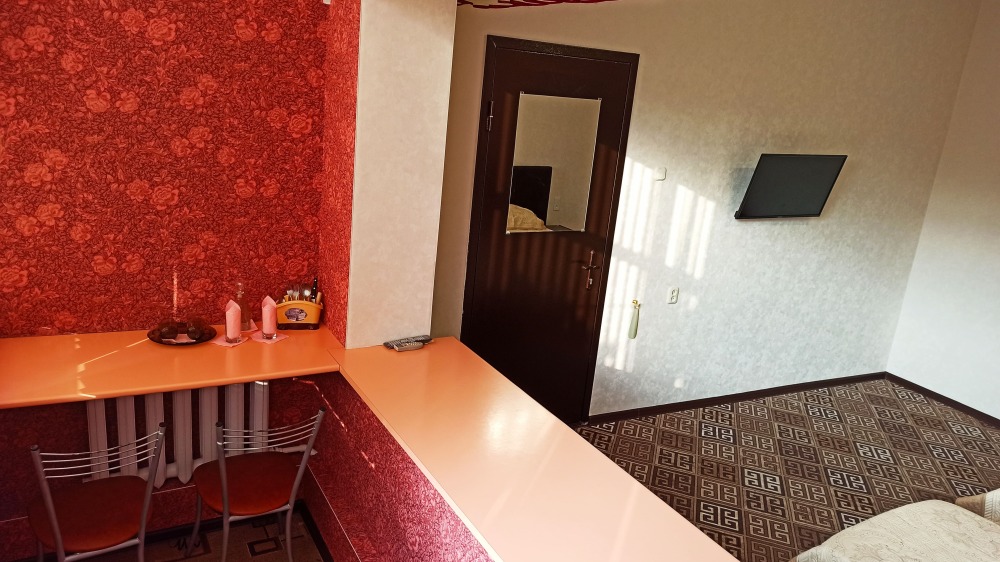 №1. Просторный номер с собственной лоджией на первом этаже отвечает всем современным требованиям комфорта. Оснащение номера: оборудован современной кроватью Box Sprinq, телевизор с плоским экраном 32», сплит система, холодильник, микроволновка, чайник, барная стойка с необходимой посудой и многое другое. В ванной комнате: душ, туалет, бесплатные гигиенические принадлежности: мыло, шампунь, комплект полотенец. Утюг с гладильной доской на этаже.
