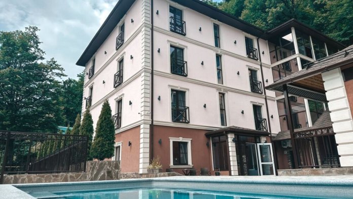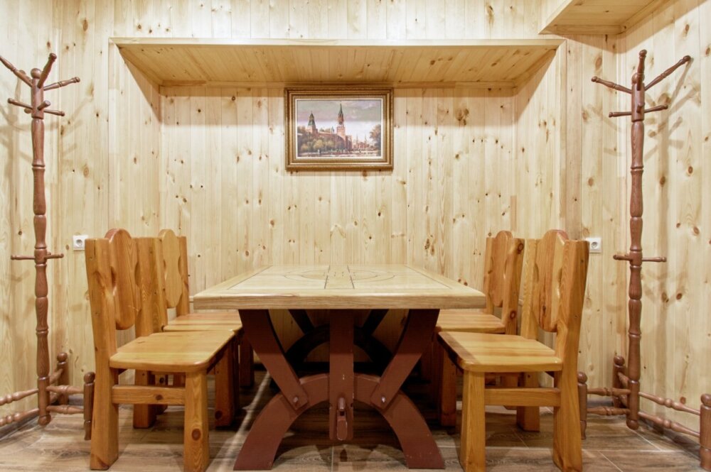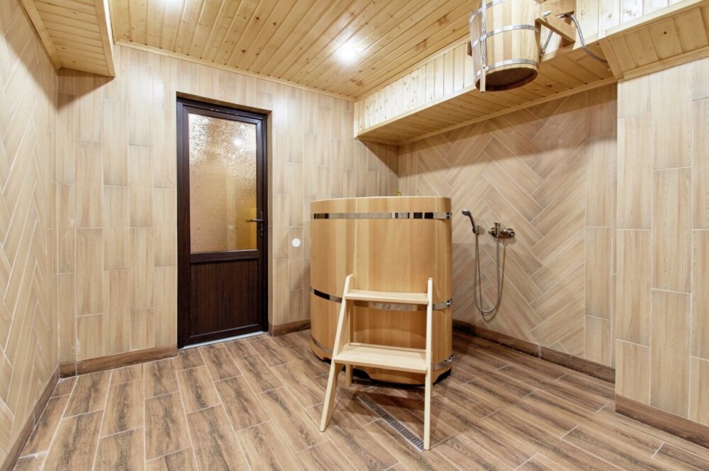 На территории расположен банный комплекс с сауной и купелью. Также работает круглогодичный открытый бассейн с подогревом. Вода поддерживает приятные 28-30 градусов, обеспечивая комфорт в любое время.