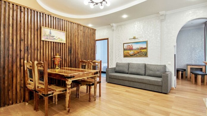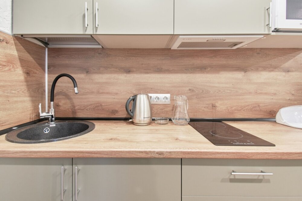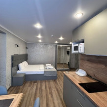 Апартаменты на 1-4 человека с двуспальной кроватью и диваном-кроватью без балкон, дети от 0-6 лет размещаются бесплатно на имеющихся кроватях с родителями. В номере есть санузел с душем, телевизор SMART, кухня, посуда, холодильник, микроволновая печь, чайник, посуда, постельное белье, халаты и тапочки (в зимний период).