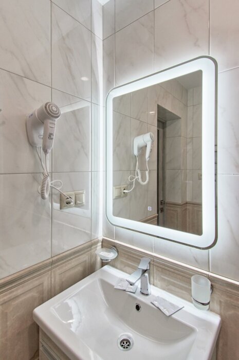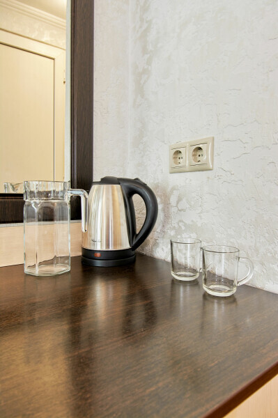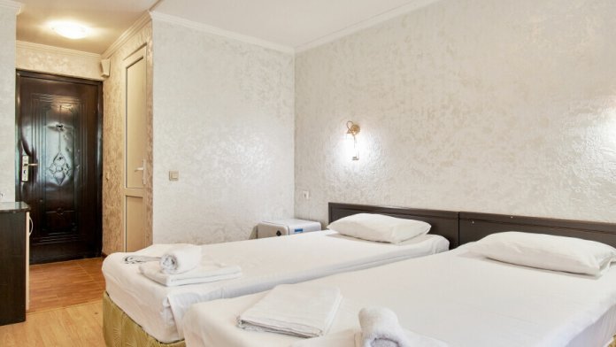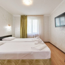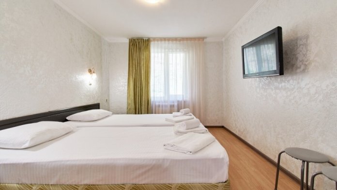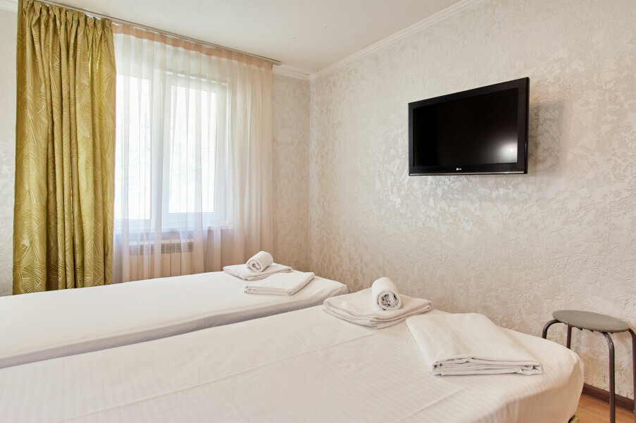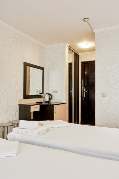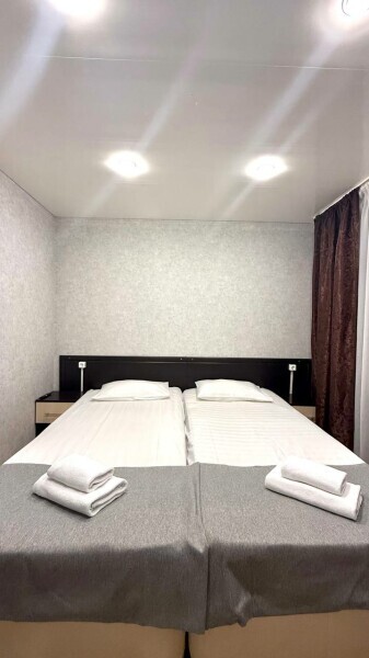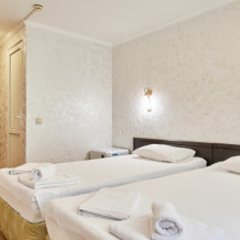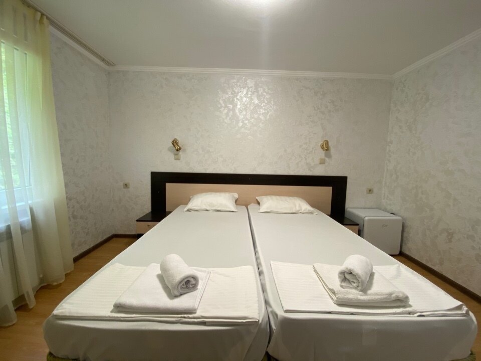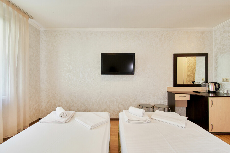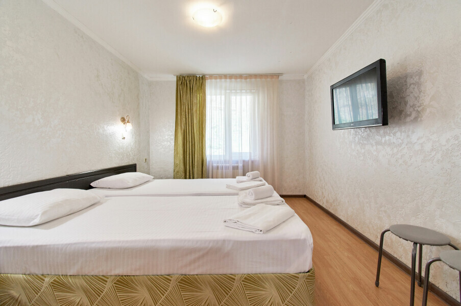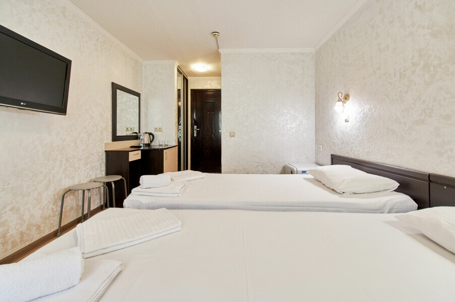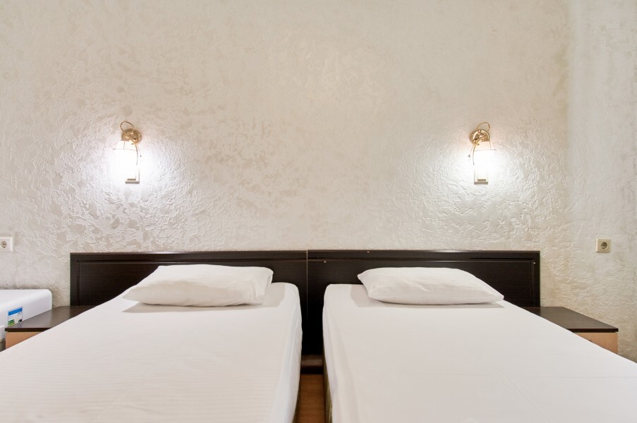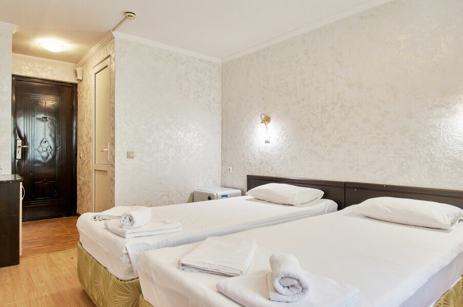 Стандартный номер на 1-2 человека с двумя раздельными 1,5-спальными кроватями, которые сдвигаются в кровать king-size, дети от 0-6 лет размещаются бесплатно на имеющихся кроватях с родителями. В номере есть санузел с душем, телевизор, холодильник, чайник, постельное белье.