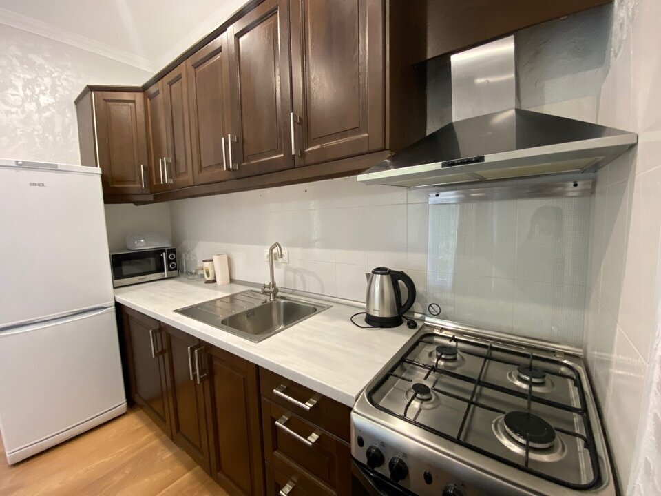 Спальные места: три 1,5-спальные кровати. Удобства: два телевизора. Кухня полностью оборудована: холодильник, микроволновая печь, плита, вытяжка, посуда. Дополнительно: фен, постельное бельё, полотенца