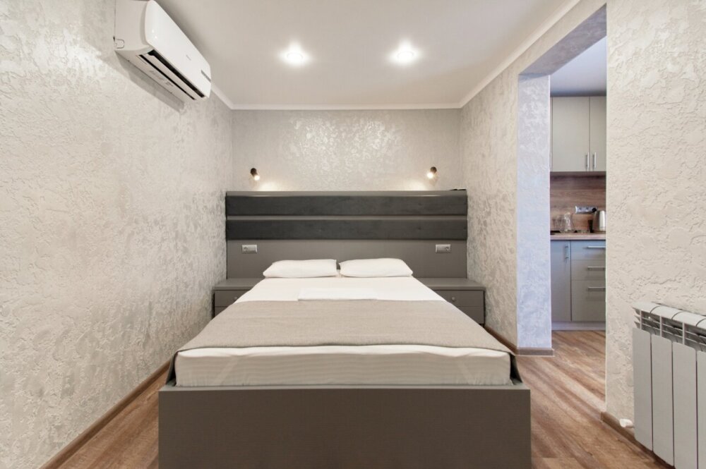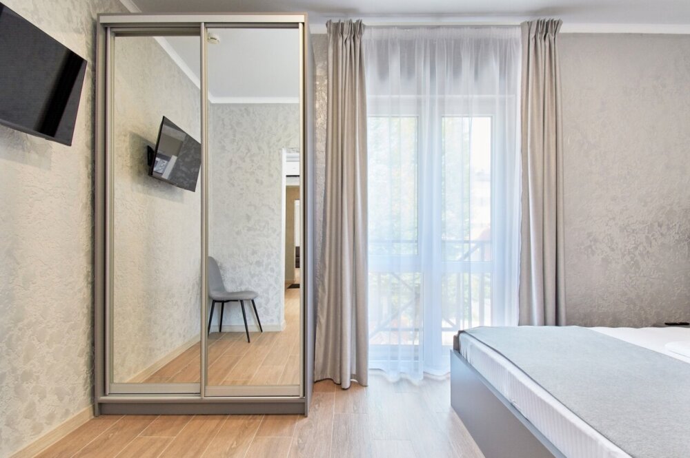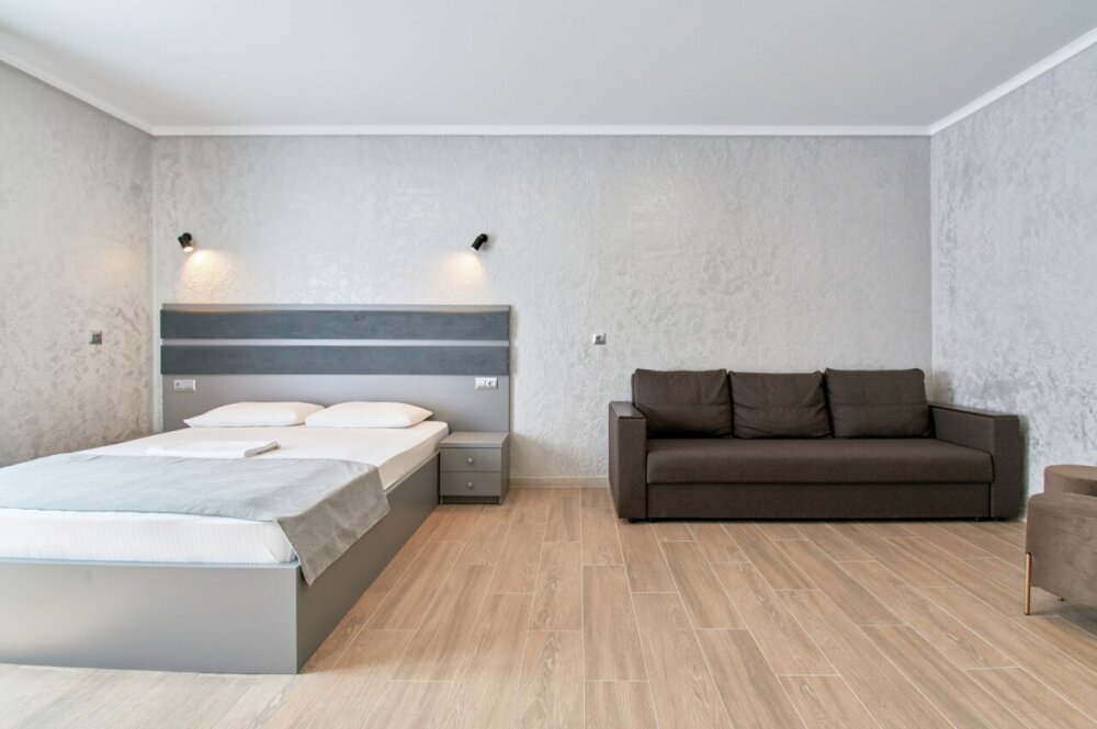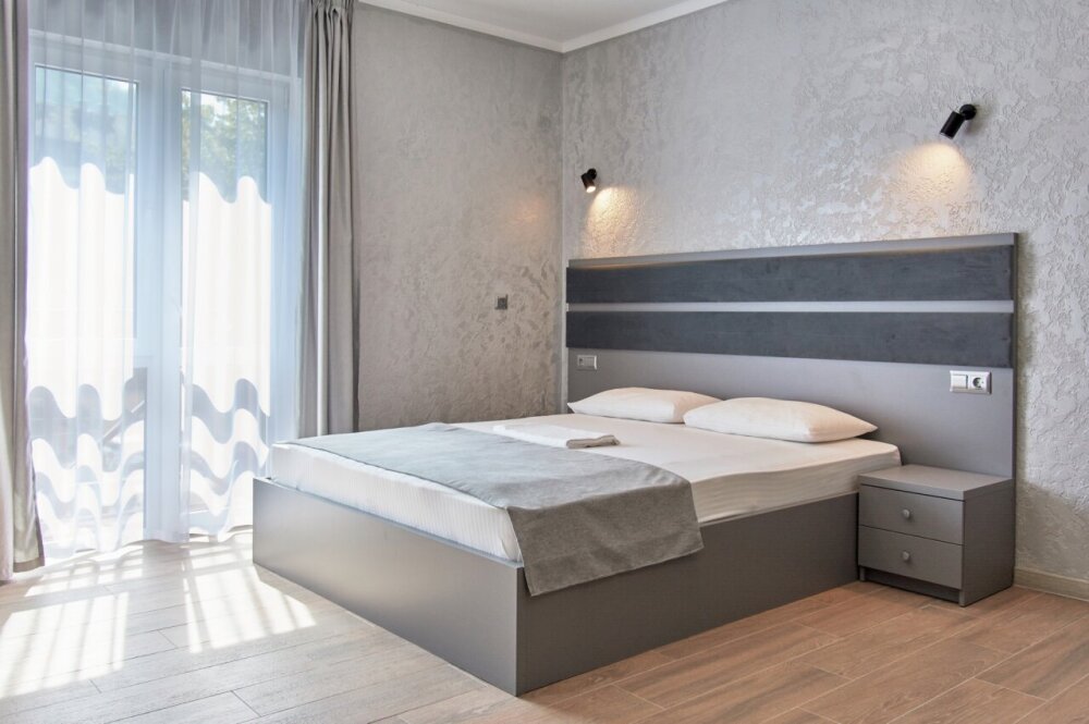 Всего в отеле 21 номер нескольких категорий: Эконом, Стандарт, Студио, Семейный и Люкс. Современный стиль номеров характеризуют правильные геометрические формы и никаких лишних деталей. Апартаменты оснащены всем необходимым для комфортного проживания.