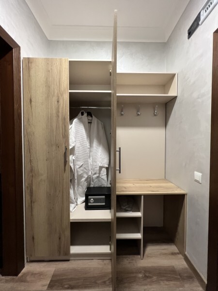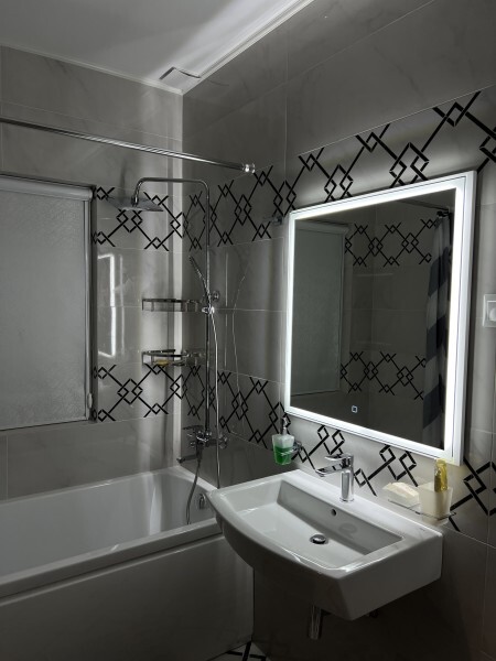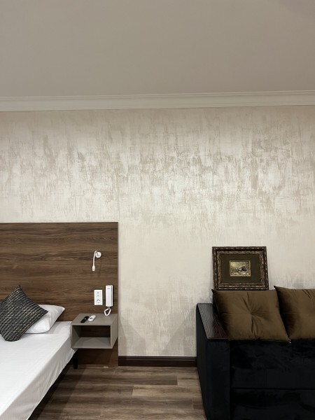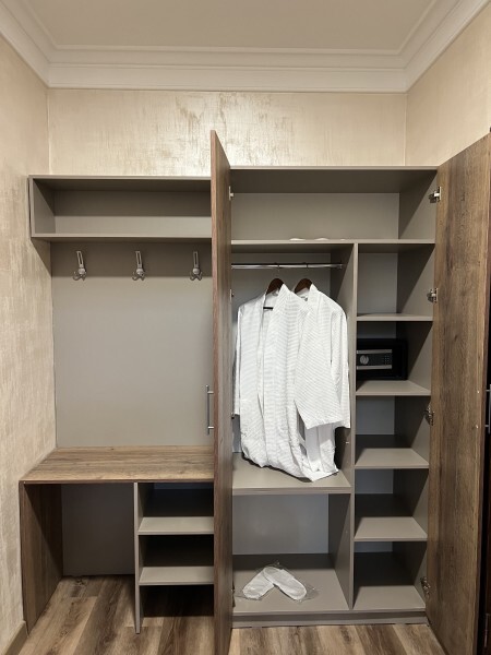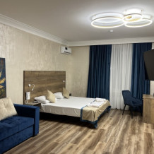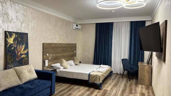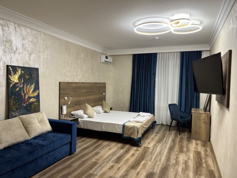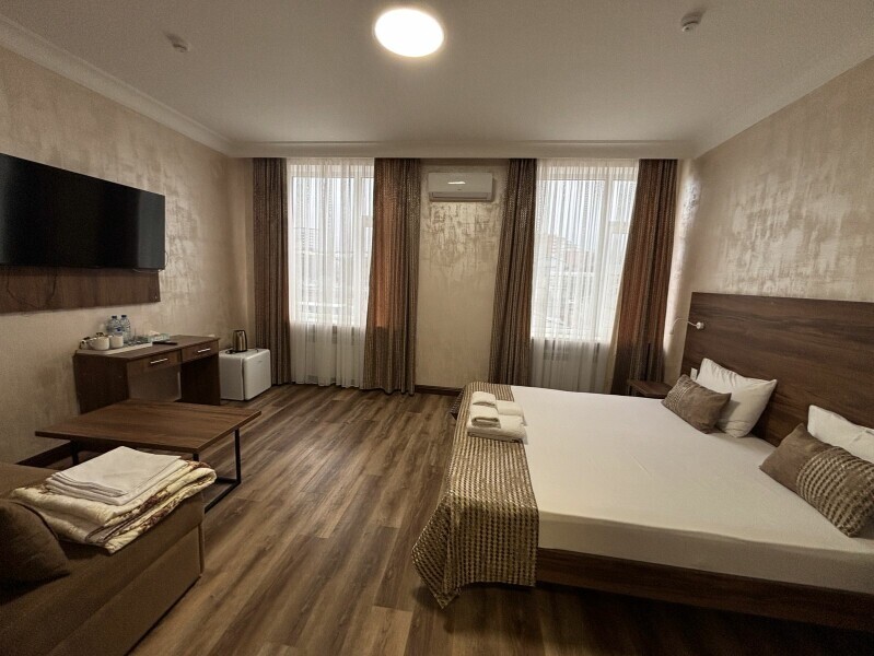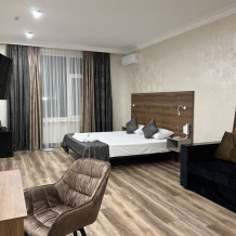 Роскошный просторный полулюкс, в котором есть все необходимое для комфортного проживания: WIFI, кондиционер, телевизор, диван, холодильник с мини-баром, рабочее место, С/У с ванной, банные принадлежности, халаты, а так же телефон для связи с ресепшеном 24/7.