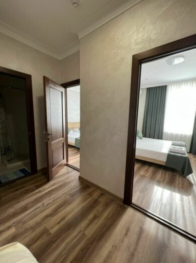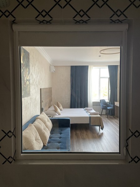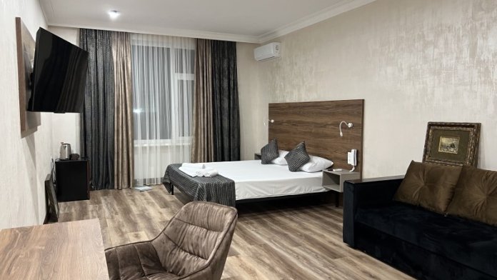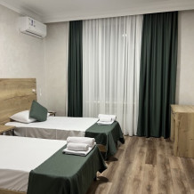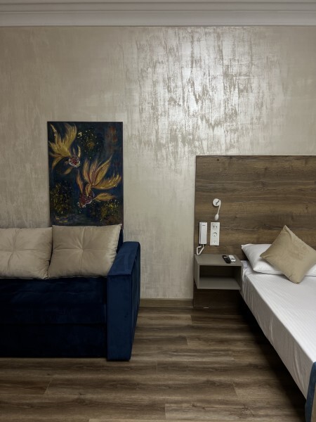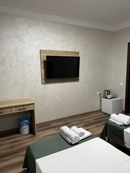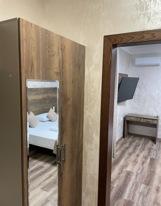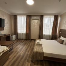 Уютный двух-комнатный номер для 4-ых, в котором есть все необходимое для комфортного проживания: WIFI, кондиционер, телевизор, холодильник с мини-баром, рабочее место, С/У, банные принадлежности, халаты, а так же телефон для связи с ресепшеном 24/7.
