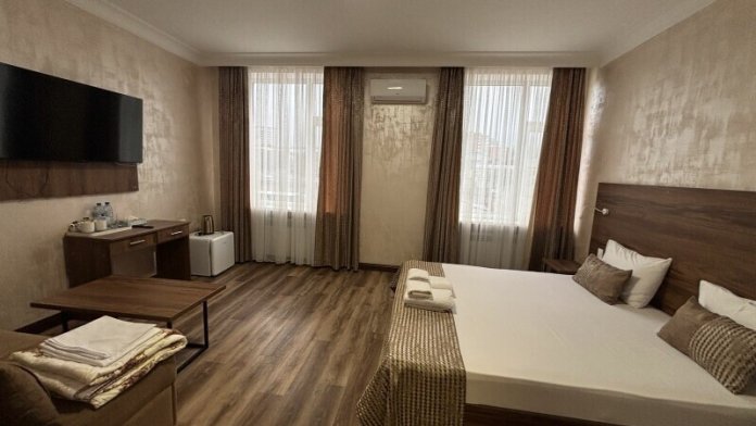 Чистый уютный номер для двоих, в котором есть все необходимое: WIFI, кондиционер, телевизор, холодильник с мини-баром, рабочее место, С/У, а так же телефон для связи с ресепшеном 24/7.