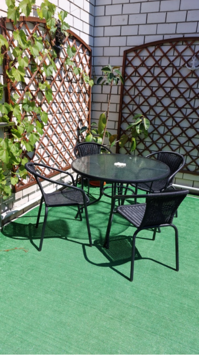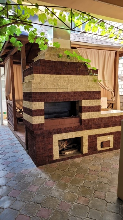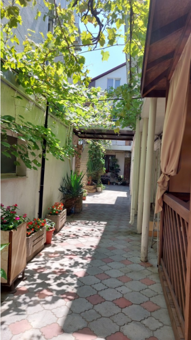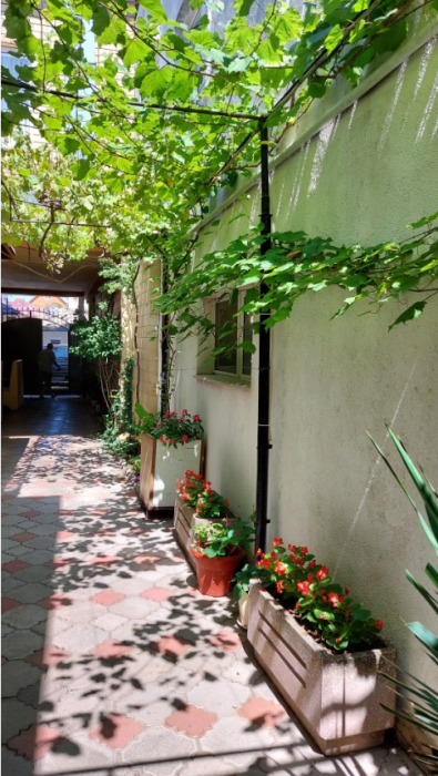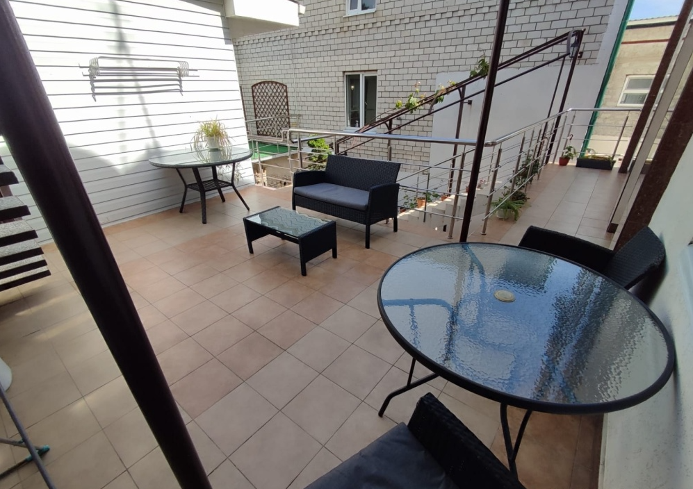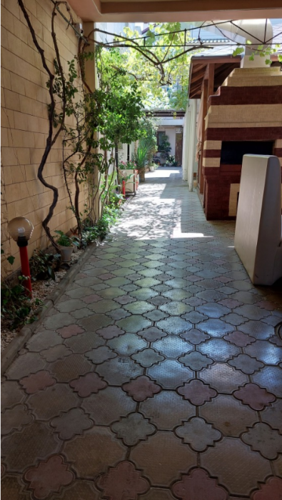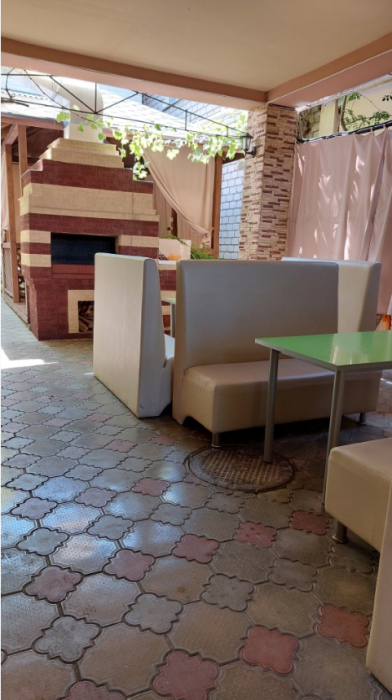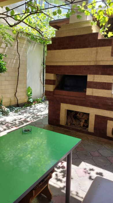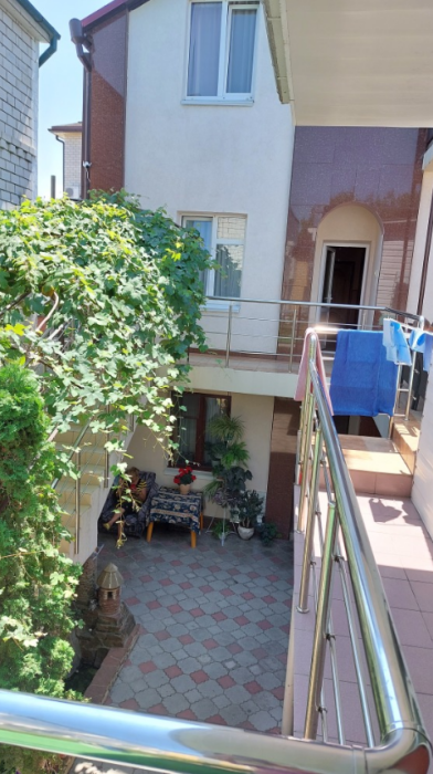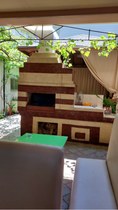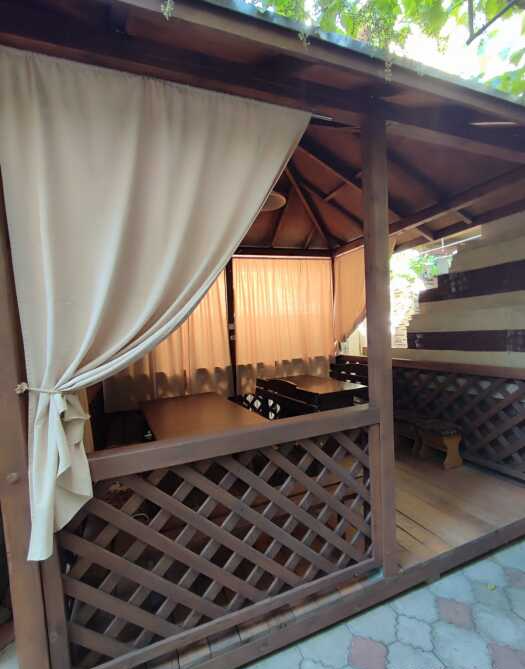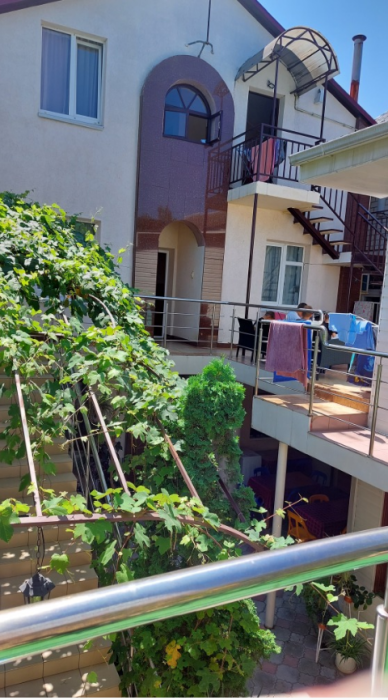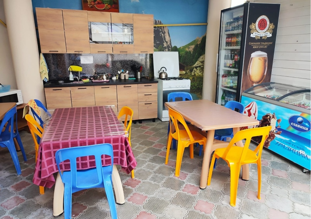 На территории гостевого дома есть кухня для самостоятельного приготовления пищи, огороженный большой двор, который еще дополнительно обеспечен круглосуточной охраной. Для взрослых - беседки и столы с креслами для отдыха на свежем морском воздухе.