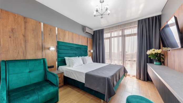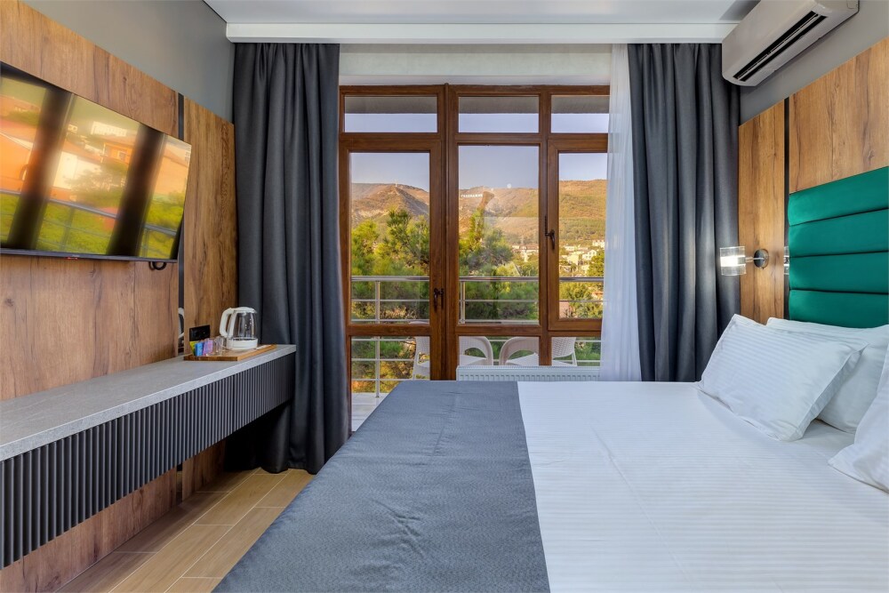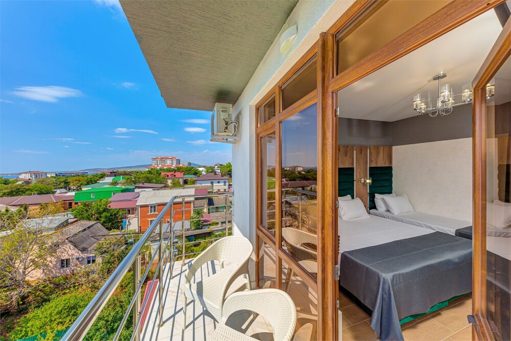Современные и комфортабельные номера с панорамными окнами открывают шикарный вид на весь город, ласковое море и величественные горы. Отель открыл свои двери в июле 2023 года. К услугам гостей 2 сауны: финская и инфракрасная, бар на крыше, с которого открывается великолепный панорамный вид на всю геленджикскую бухту. Все номера оснащены новой мебелью и техникой, собственными ванными комнатами. В кафе накрывают завтраки по системе «Шведский стол» и сервируют блюда русской и европейской кухни.
